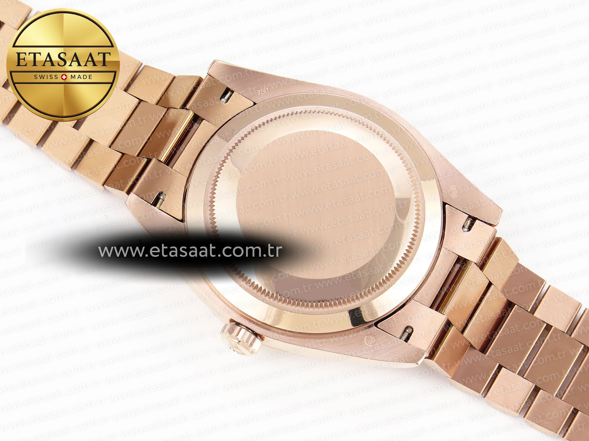 Case:: 18K rose gold plated solid stainless steel case, Cu-W metal to increase watch weight to match the genuine gold watch weight, almost same weight as genuine watch