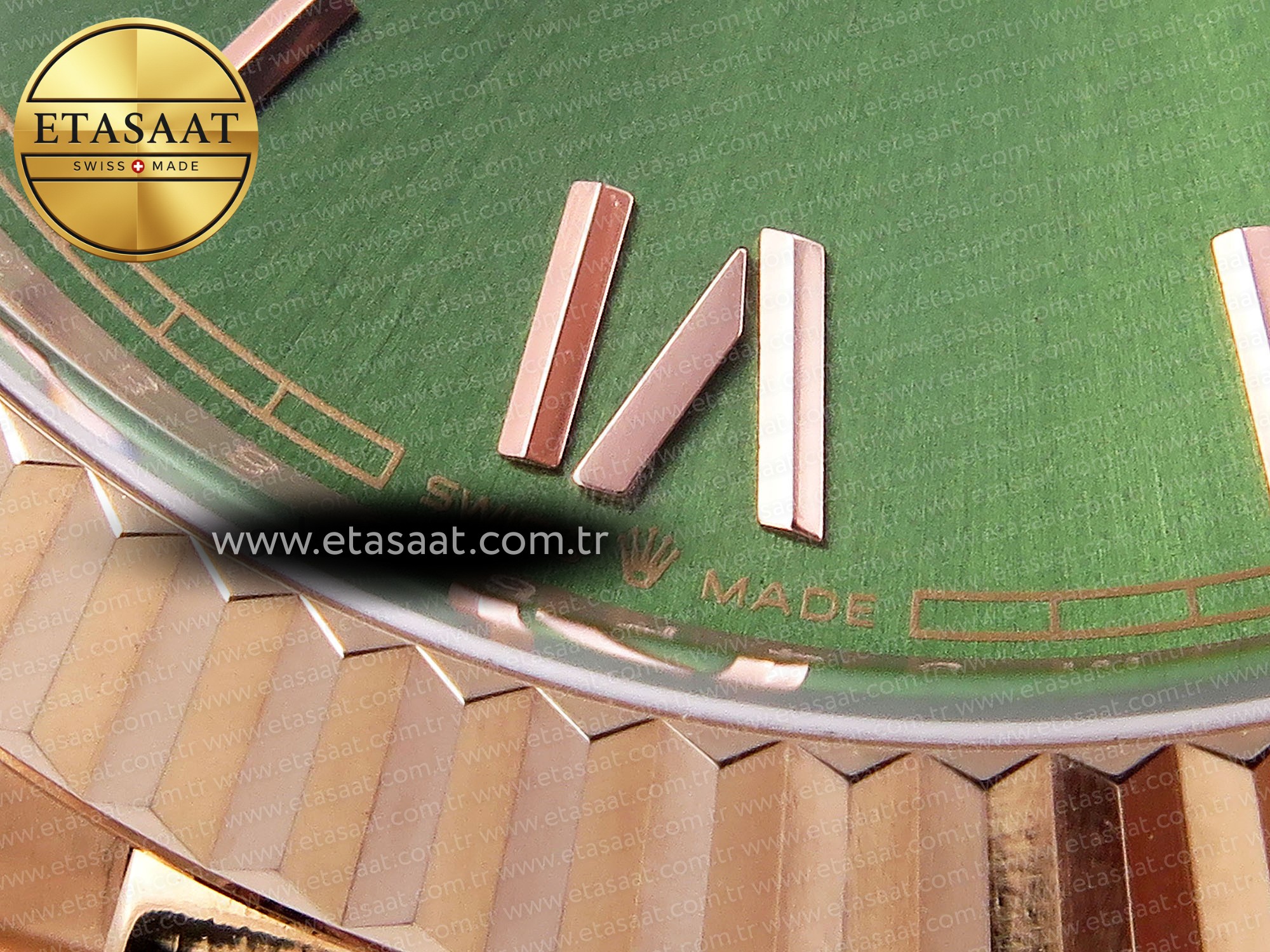 DayDate 40 RG GSF GAIN WEIGHT GREEN ROMAN DIAL ON PRESIDENT BRACELET A2836