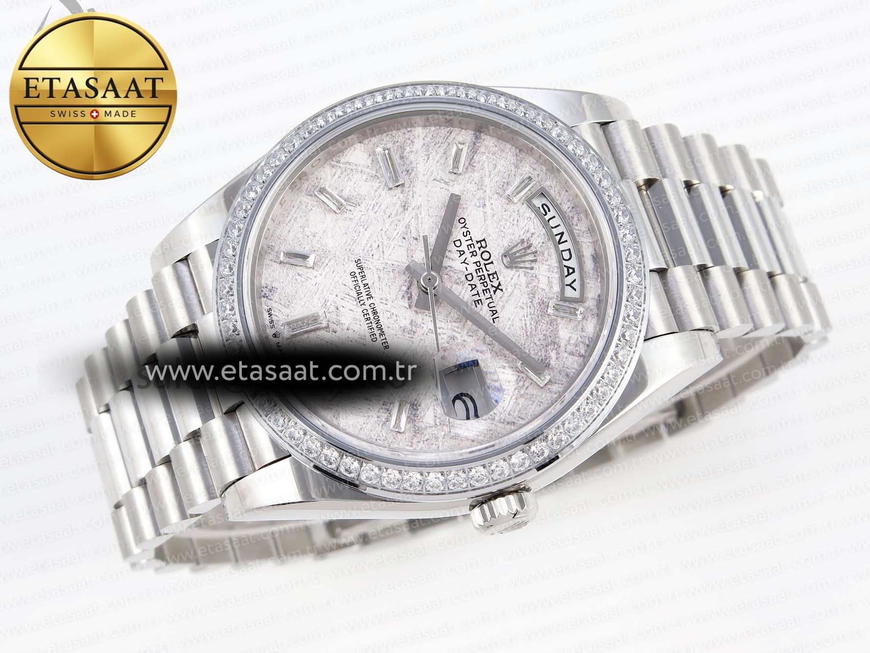 DayDate 40 SS GSF GAIN WEIGHT METEORITE CRYSTAL DIAL DIAMONDS BEZEL ON PRESIDENT BRACELET A2836