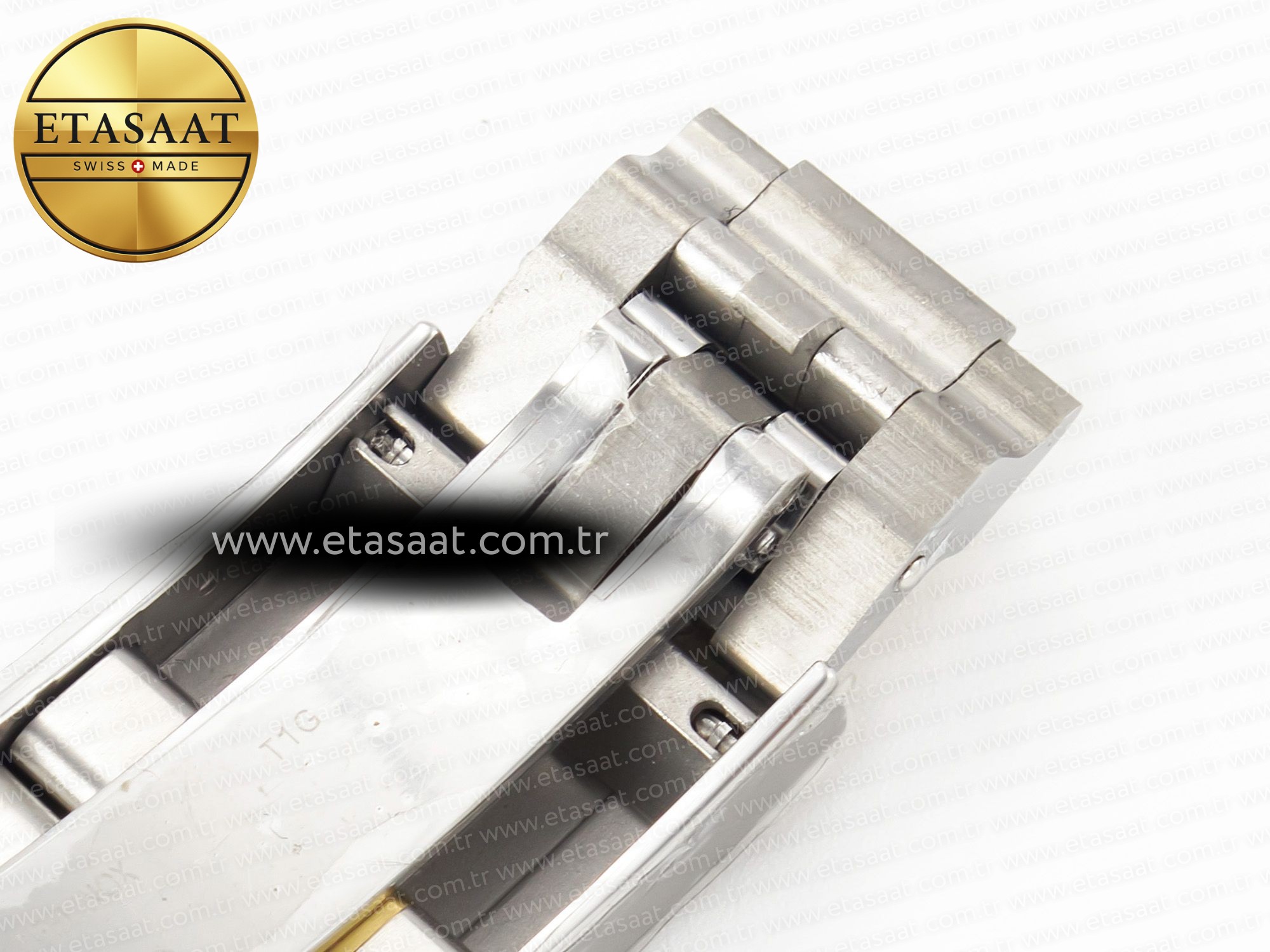 Strap: Solid 904L stainless steel bracelet with 18k yellow gold plated middle links