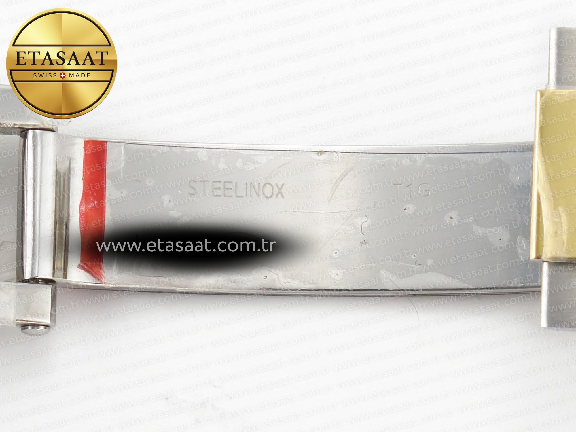 Strap: Solid 904L stainless steel bracelet with 18k yellow gold plated middle links