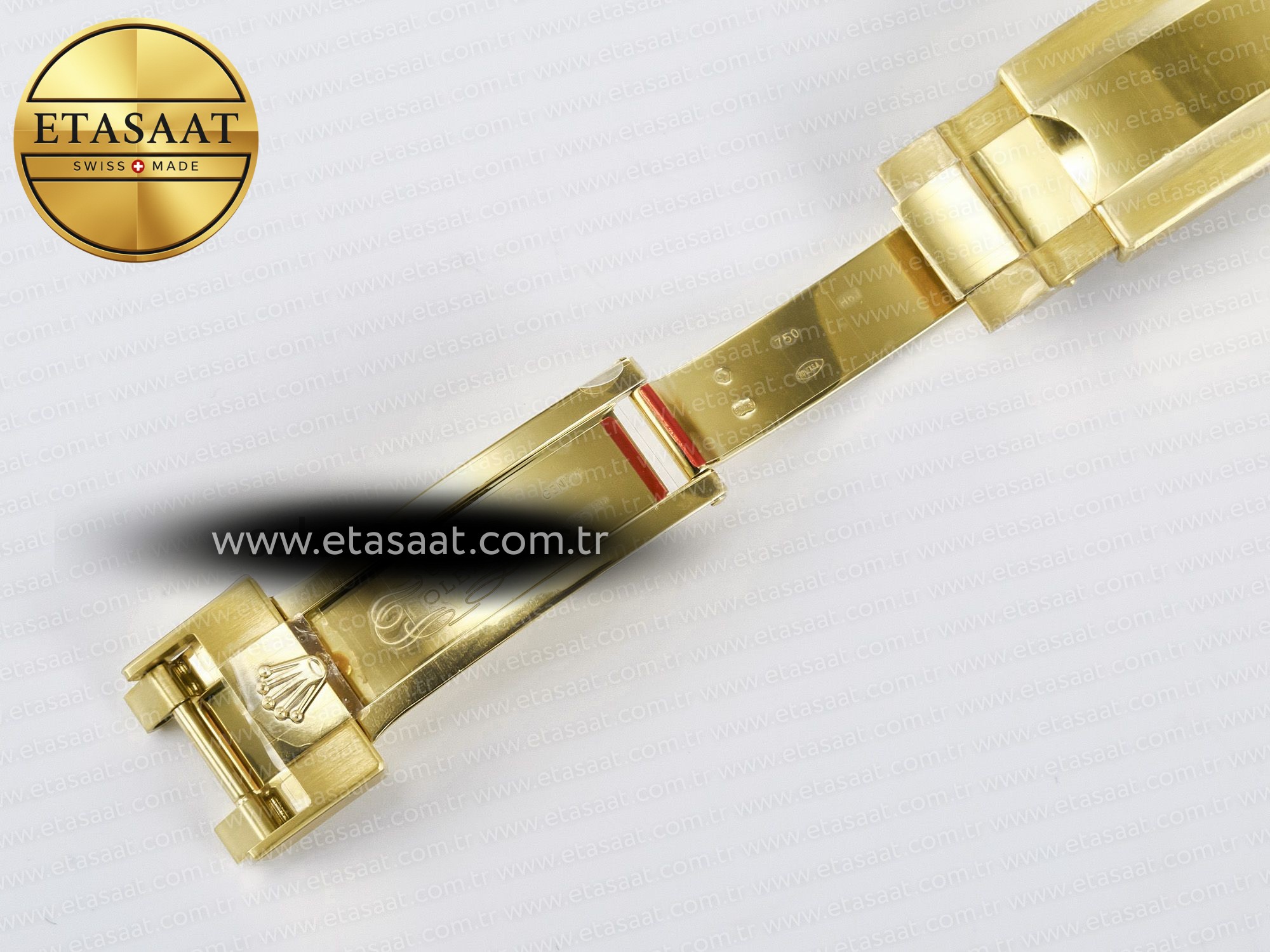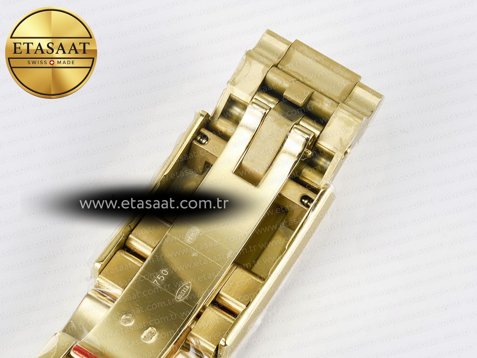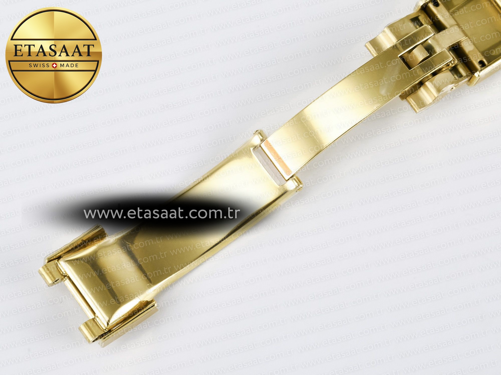 Strap: 18k yellow gold plated 1:1 replicated solid 904L stainless steel bracelet, Cu-W metal to increase watch weight to match the genuine gold watch weight, almost same weight as genuine watch