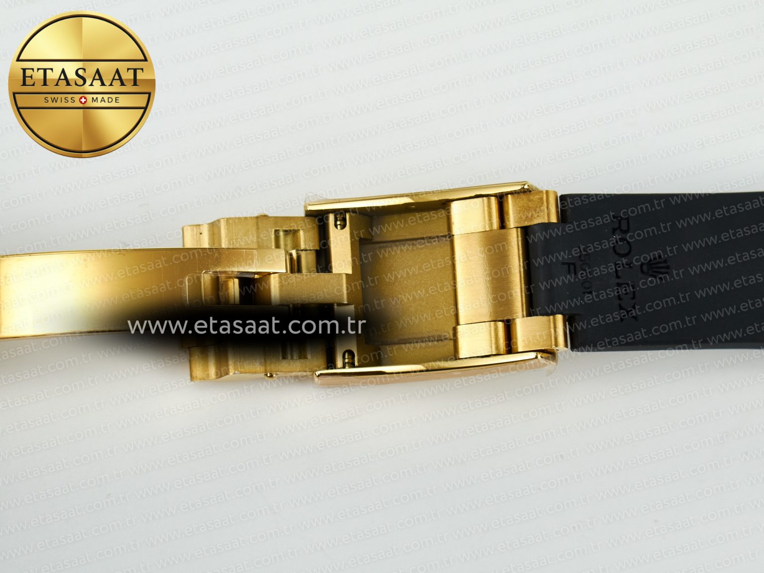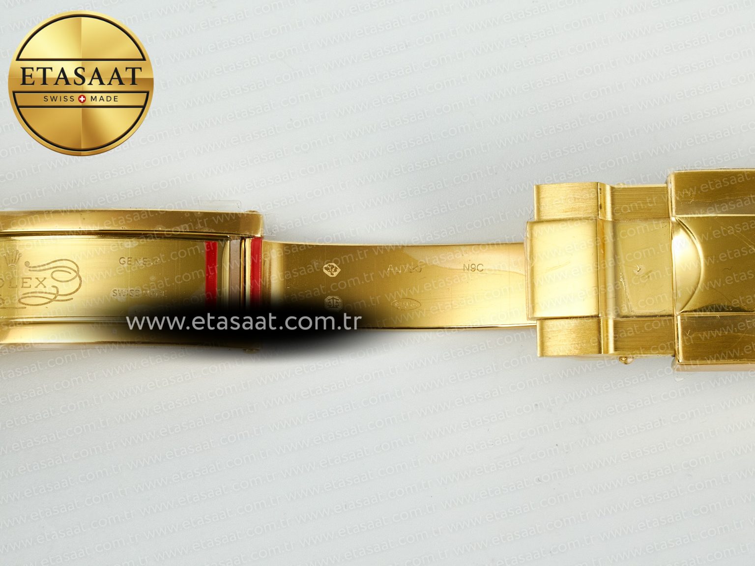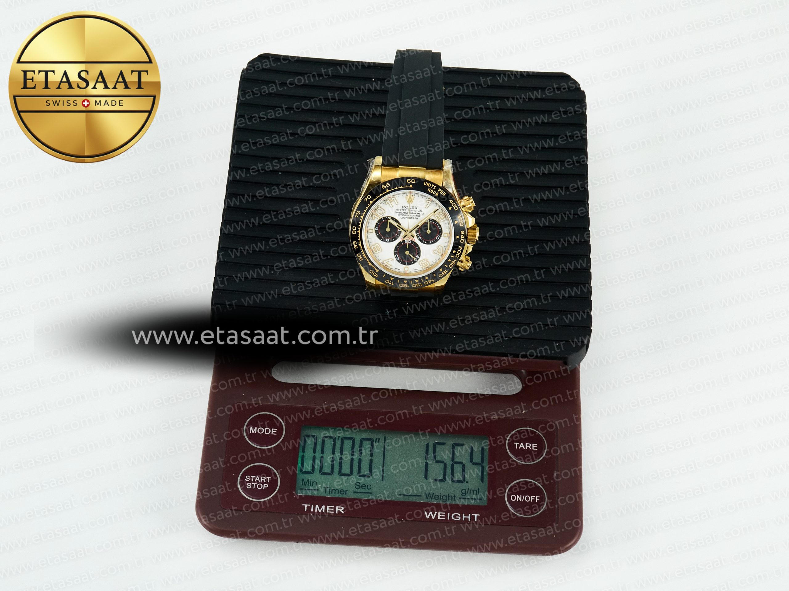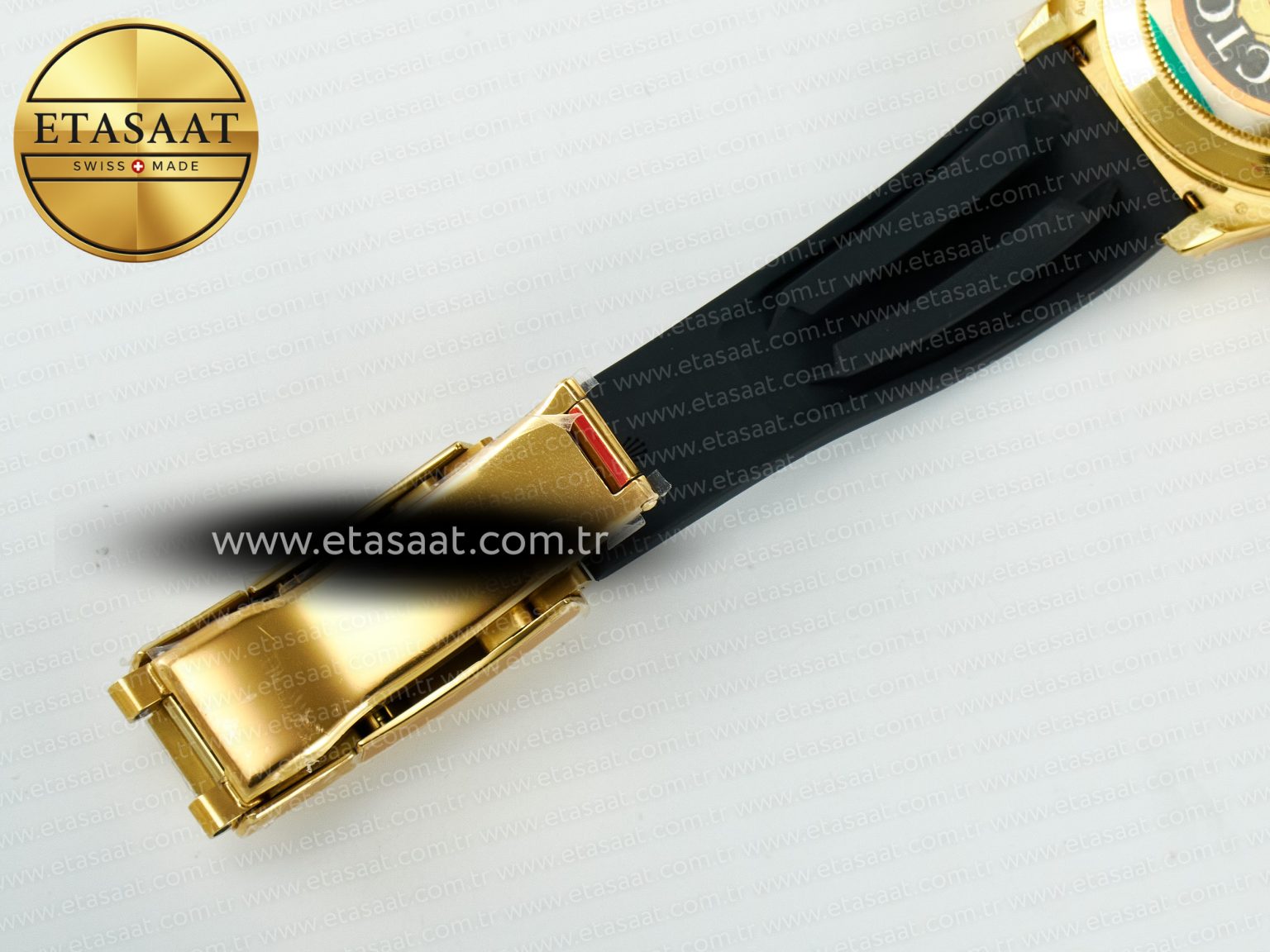 Bezel: Black ceramic tachymeter bezel, real gold plated correct markers, same shape and depth as genuine bezel