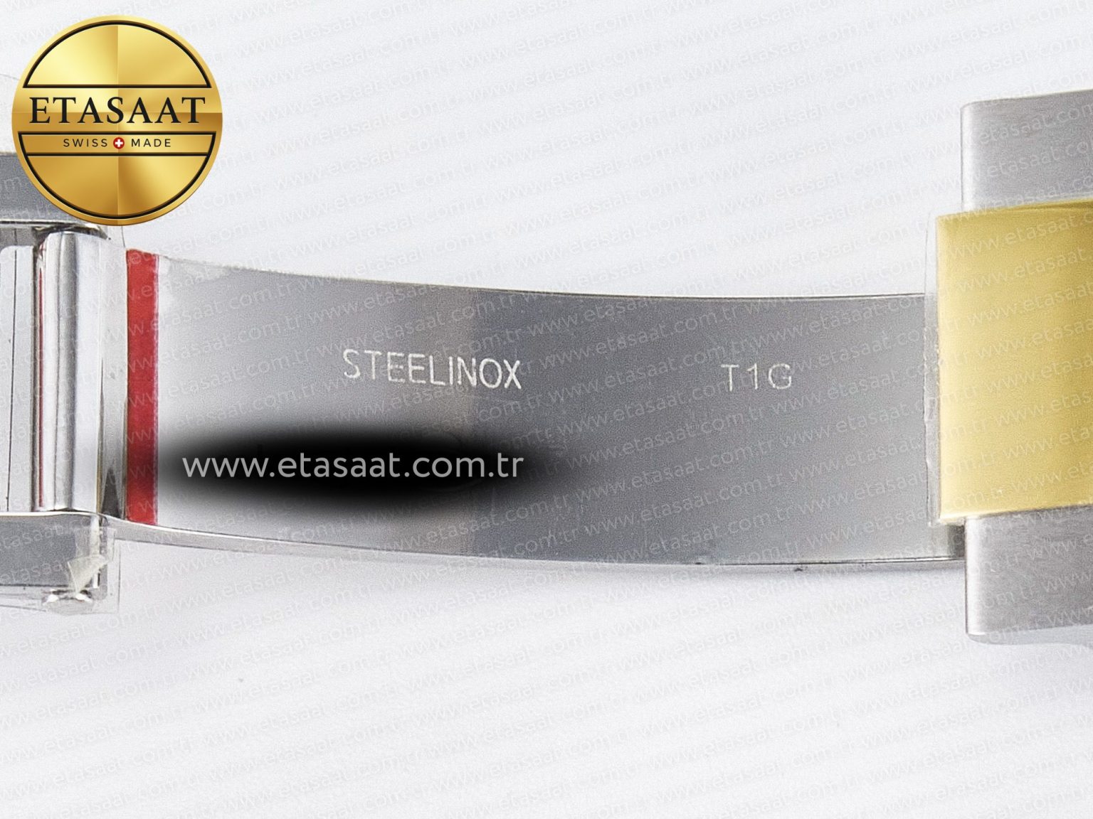 Strap: Stainless steel bracelet with 18k yellow gold plated middle links