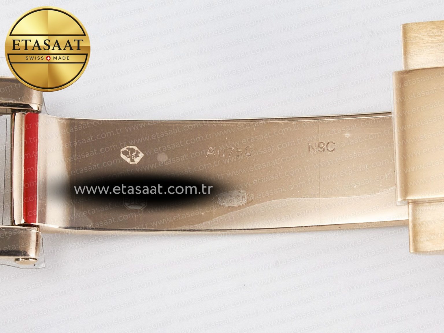 Strap: 18K rose gold plated 904L stainless steel case and Cu-W metal to increase watch weight to match the genuine gold watch weight