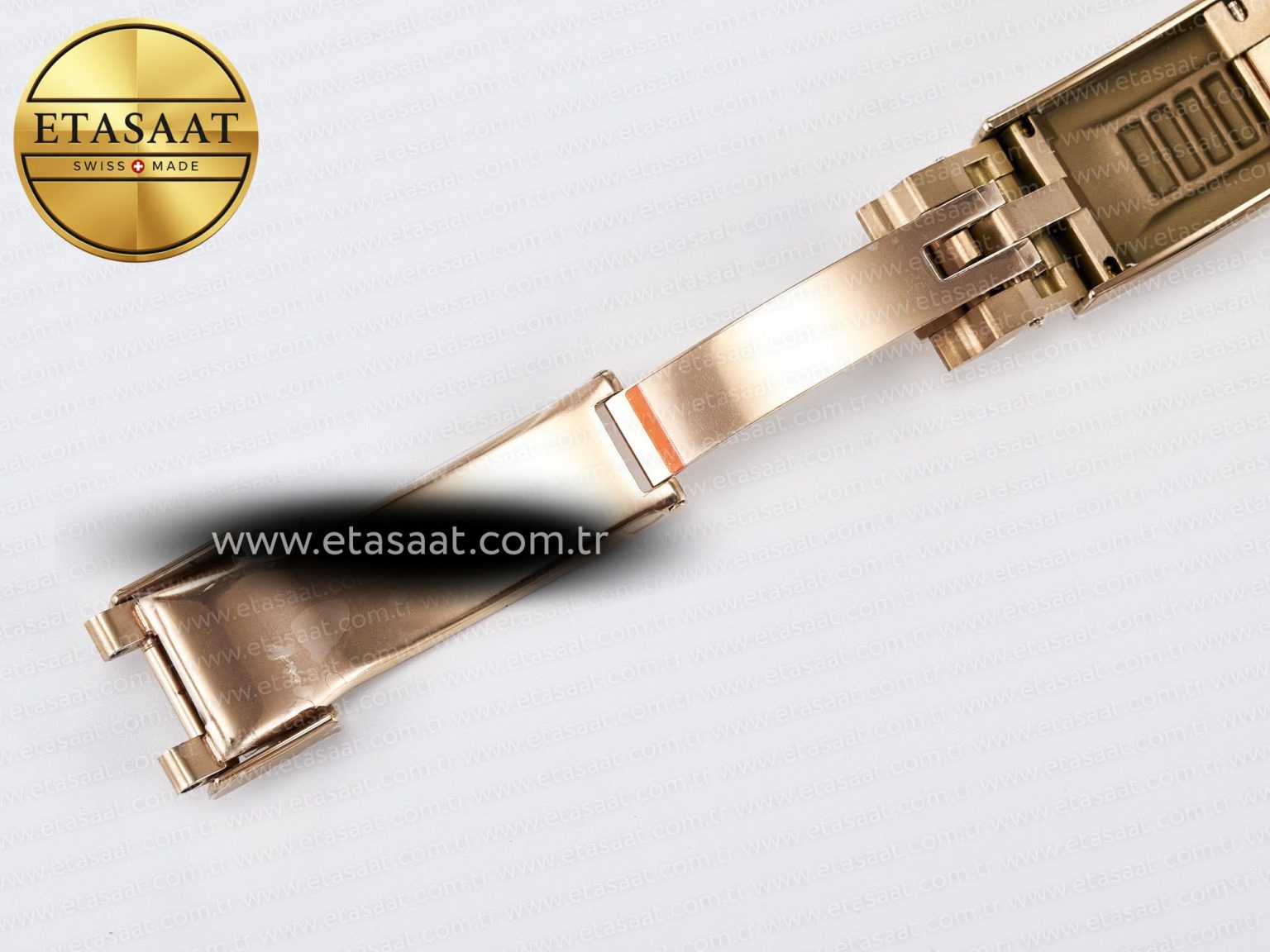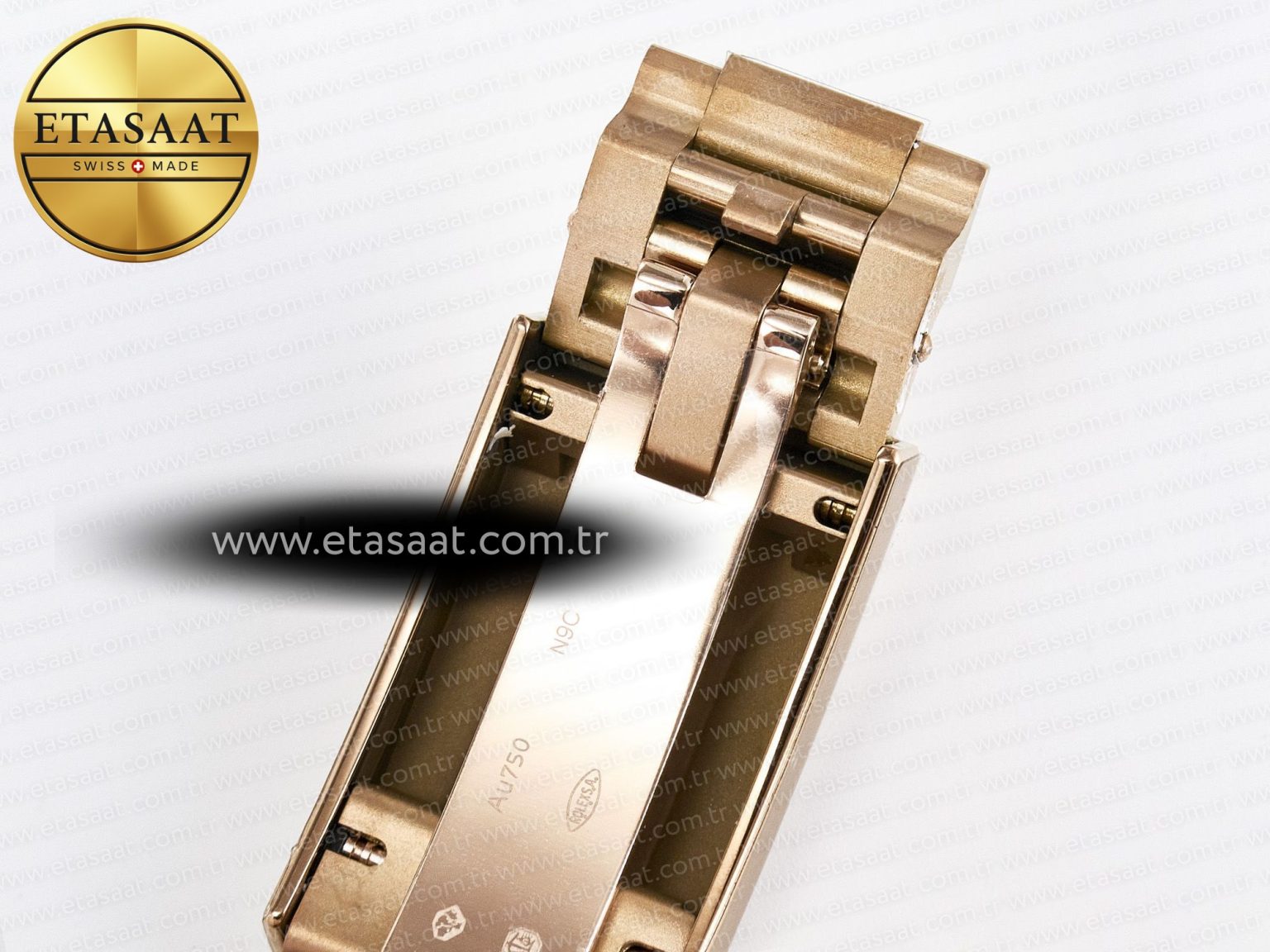 Case: 18k rose gold plated 1:1 replicated solid 904L stainless steel case, Cu-W metal to increase watch weight to match the genuine gold watch weight, the whole watch weight is about 140g