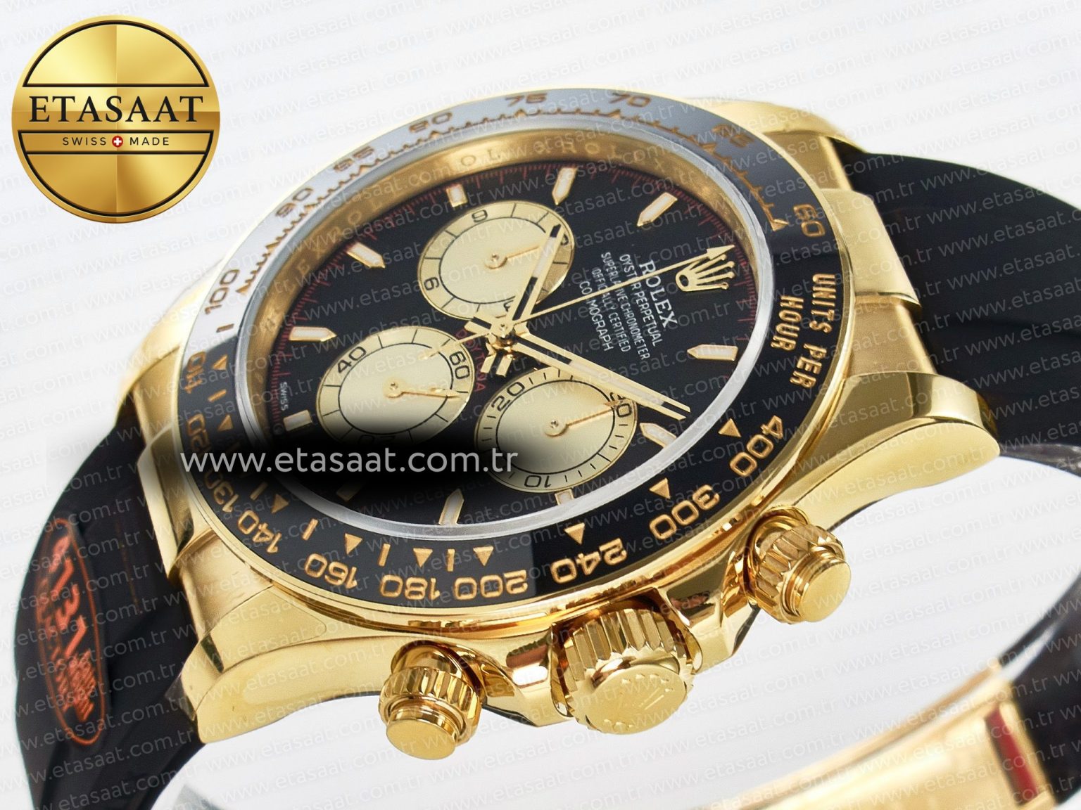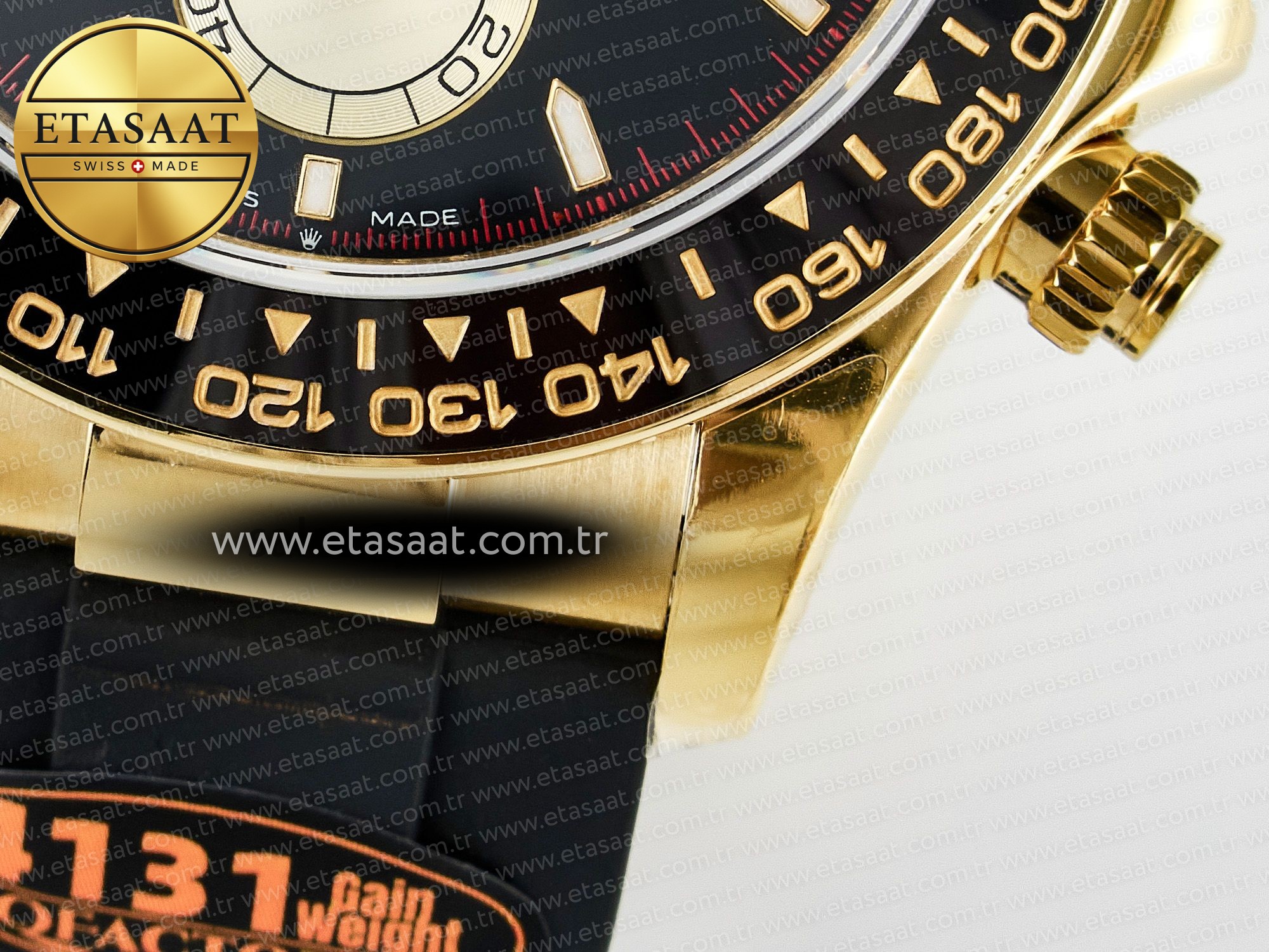 Case: 18k yellow gold plated 1:1 replicated solid 904L stainless steel case, Cu-W metal to increase watch weight to match the genuine gold watch weight, the whole watch weight is about 140g