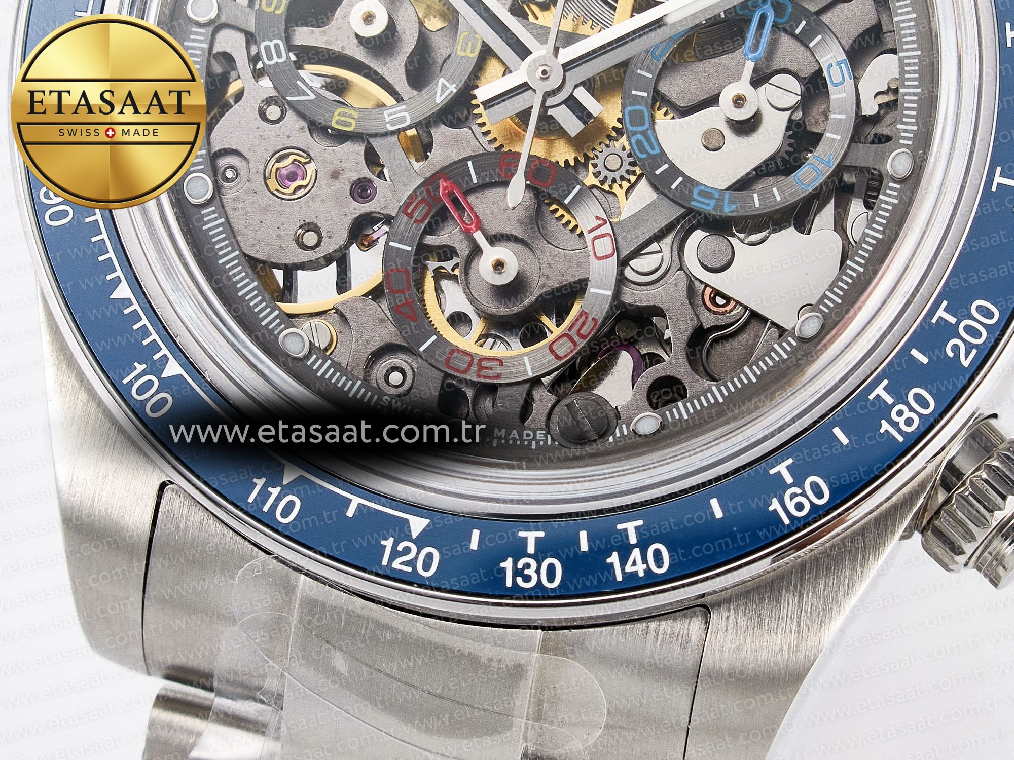Movement: Asian Super Clone4130 movement 28800vph, 1:1 replica of the genuine movement, fully functional. Blue Spring is the same as the original.