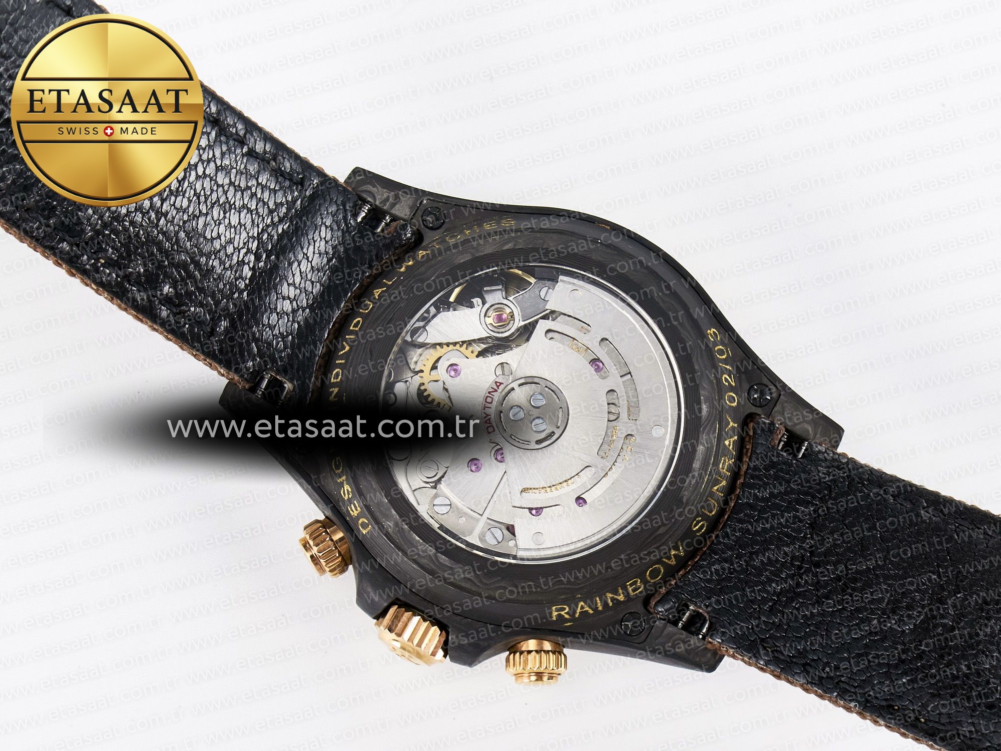 “Daytona DIW Carbon Case DIWF Edition Black Dial Rainbow Diamonds Bezel on Brown Nylon Strap A7750” için yorum yapan ilk kişi siz olun Yanıtı iptal et