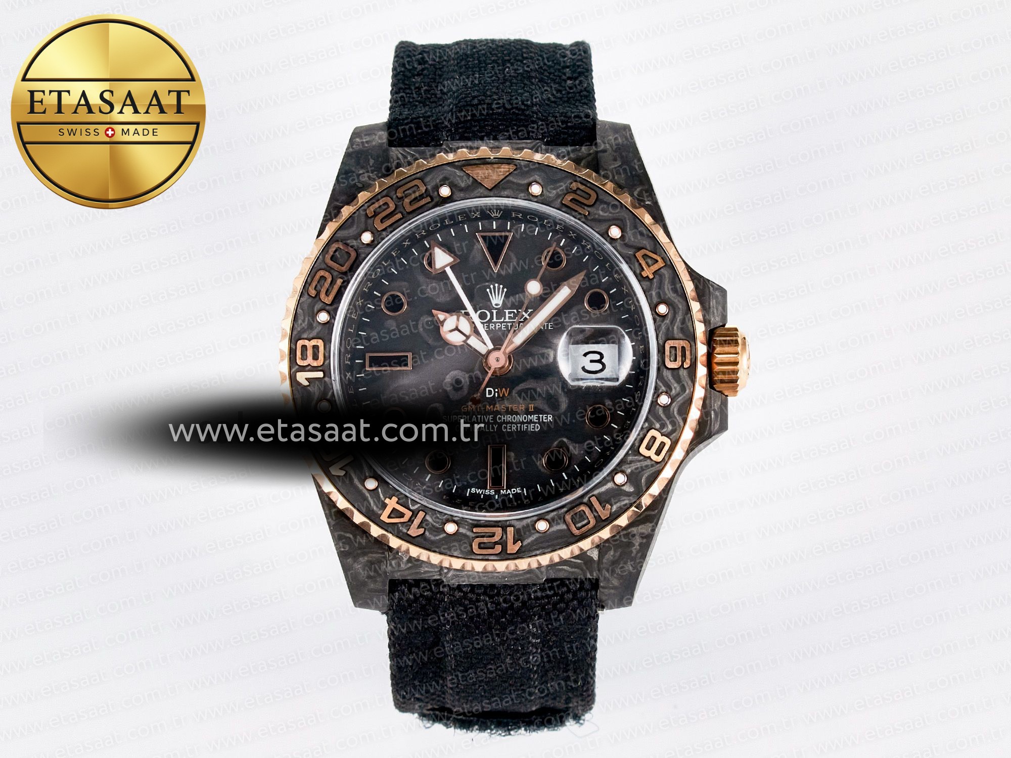 GMT Carbon DIWF Best Edition Black Carbon Dial RG Markers on Black Nylon Strap SA3186 CHS
