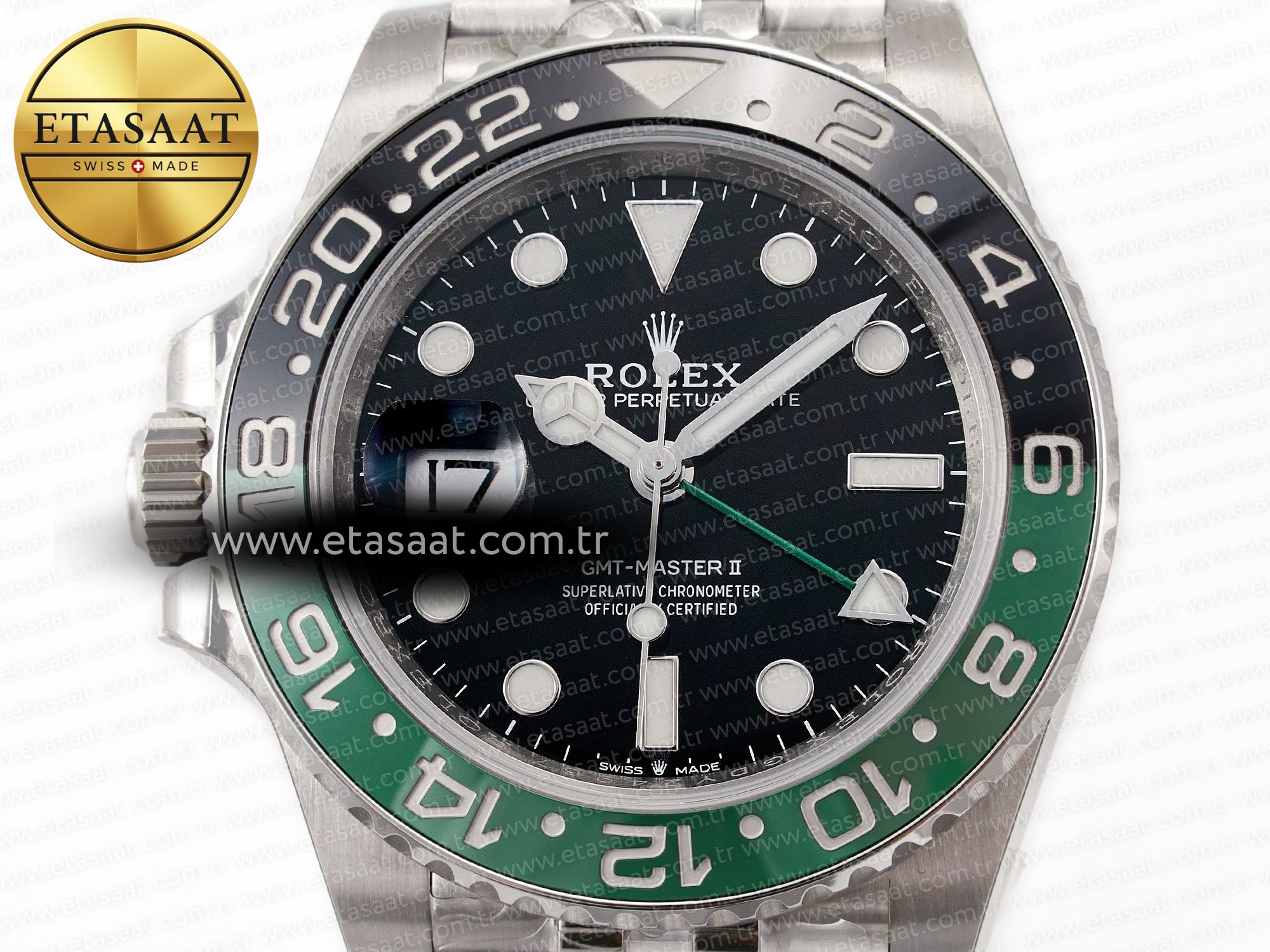 Bezel: Bi-directional rotating Green/Black ceramic bezel