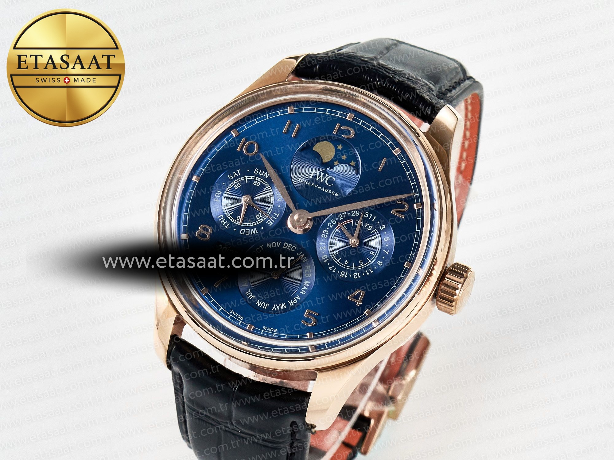 IW5033 Portugieser Perpetual Calendar RG V9F 1:1 Best Edition Blue Dial on Black Leather Strap A52610