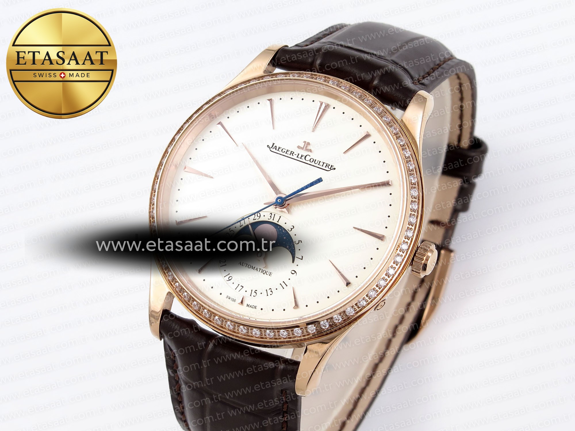 Master Ultra Thin Moon 1368420 RG ZF 1:1 Best Edition White Diamond Dial on Brown Leather Strap SA925 Super Clone V2