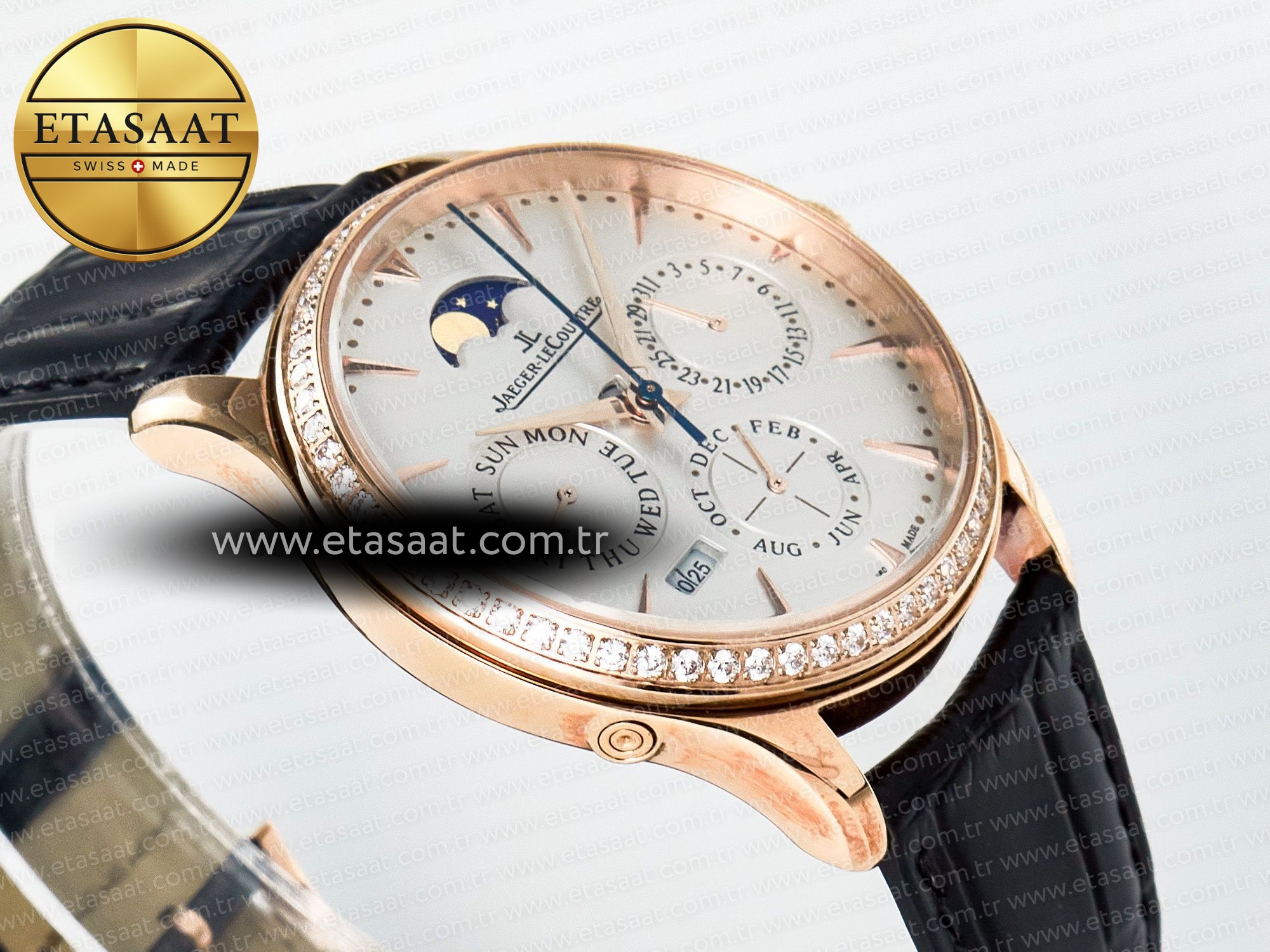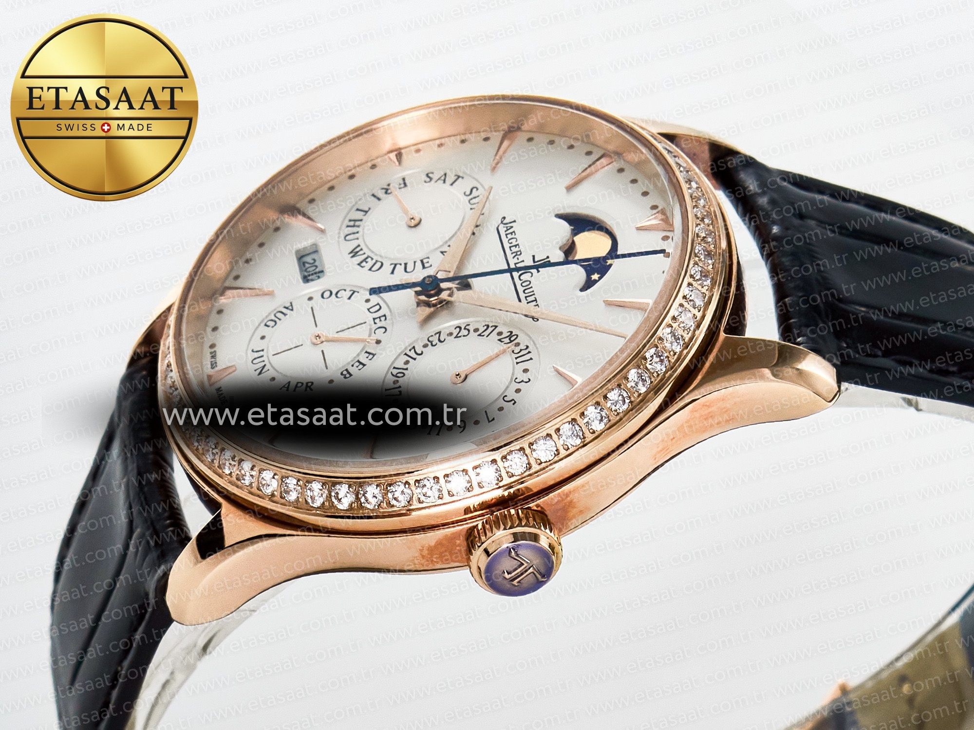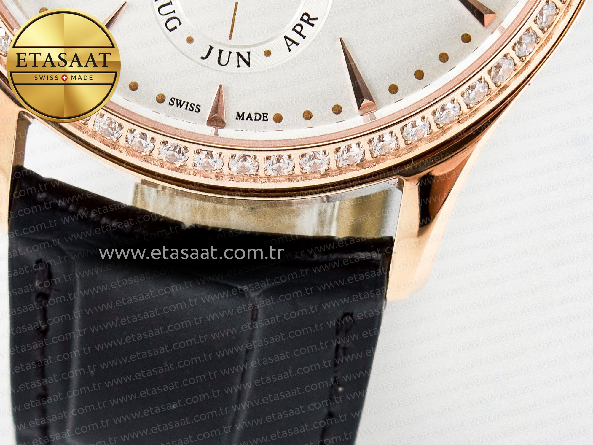 Master Ultra Thin Perpetual Calendar RG V9F 1:1 Best Edition White Dial Diamonds Bezel on Black Leather Strap A868 V2