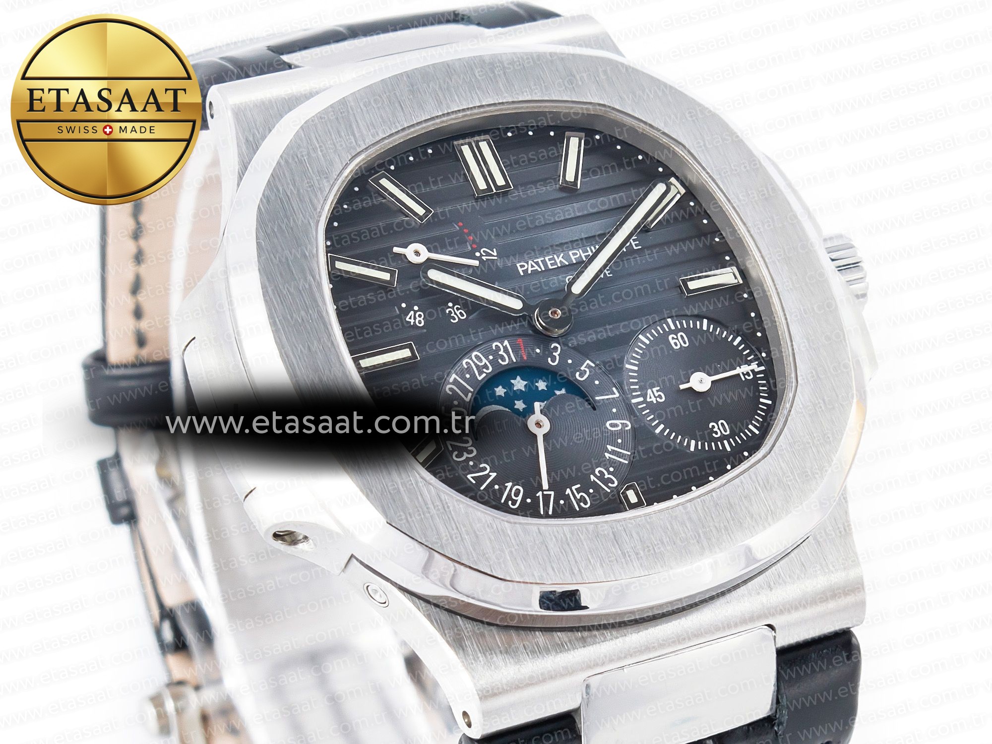 Nautilus 5712 SS PPF 1:1 Best Edition Blue Dial on Black Leather Strap A240 Super Clone V2