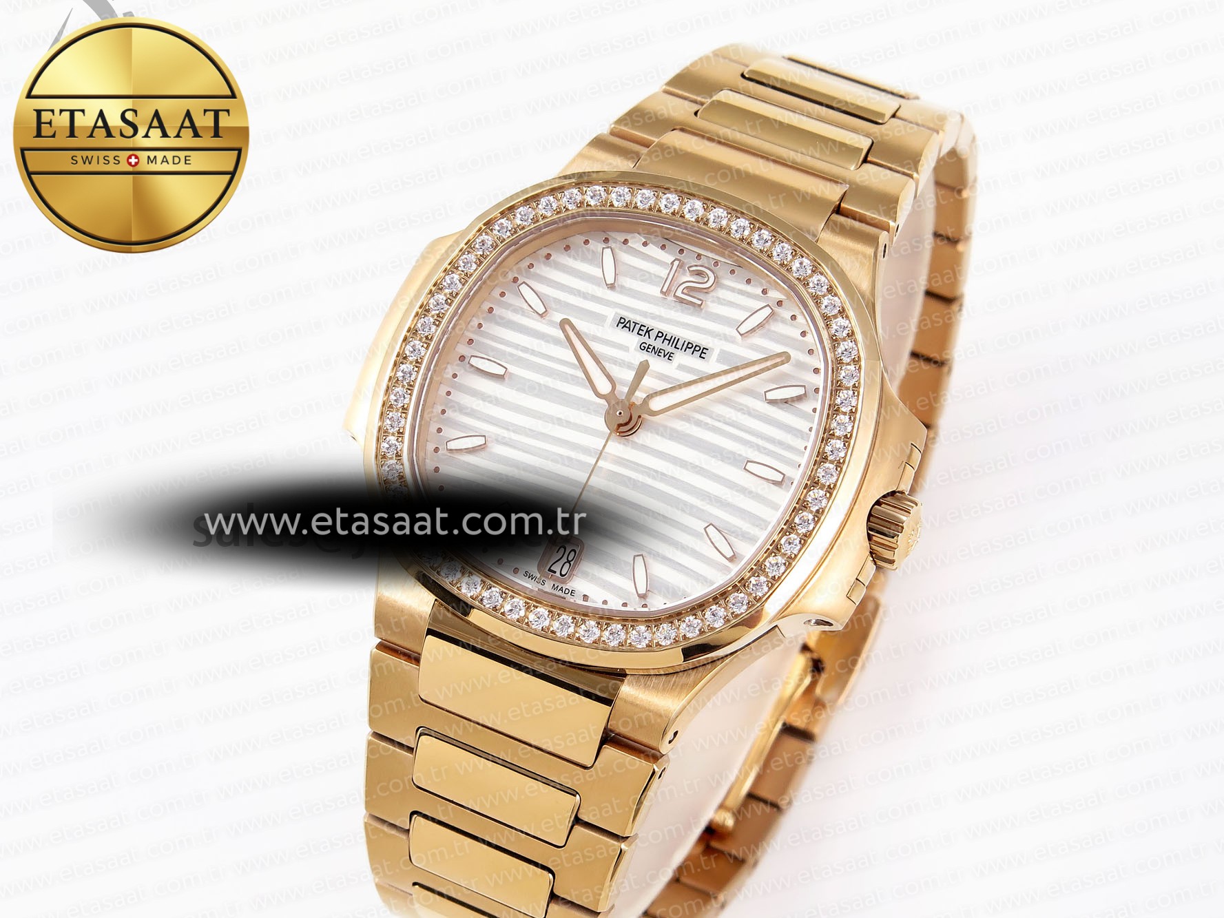 NAUTILUS 7118 LADIES RG PPF 1:1 BEST EDITION WHITE DIAL DIAMONDS BEZEL ON RG BRACELET 324CS