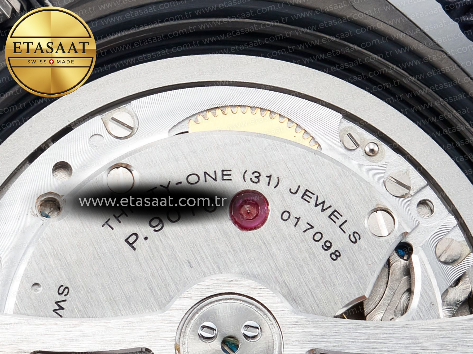 Movement: Base Movement: Asian 7750 automatic movement; Decoration: Platinum plated movement plate and rotor which are made according to the genuine movement