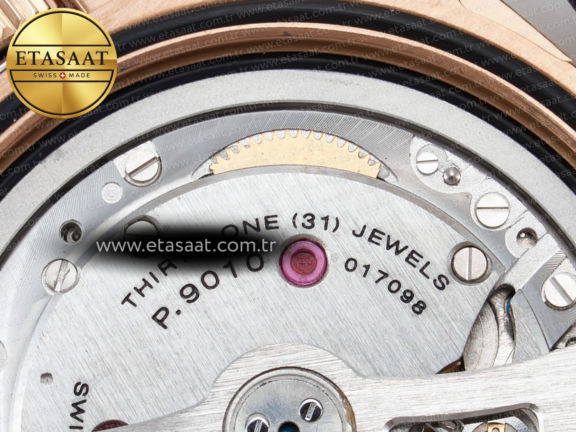 Movement: Base Movement: Asian 7750 automatic movement; Decoration: Platinum plated movement plate and rotor which are made according to the genuine movement
