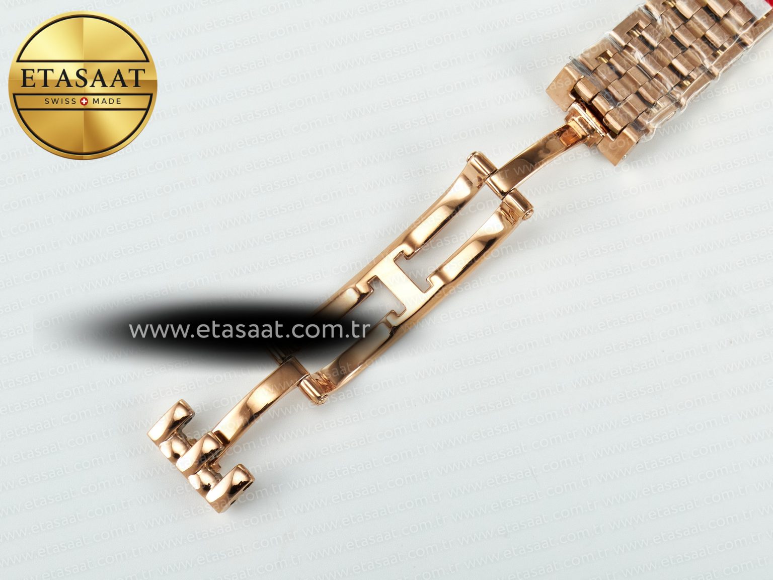 Strap: Solid 316L stainless steel bracelet with 18k rose gold plated middle links