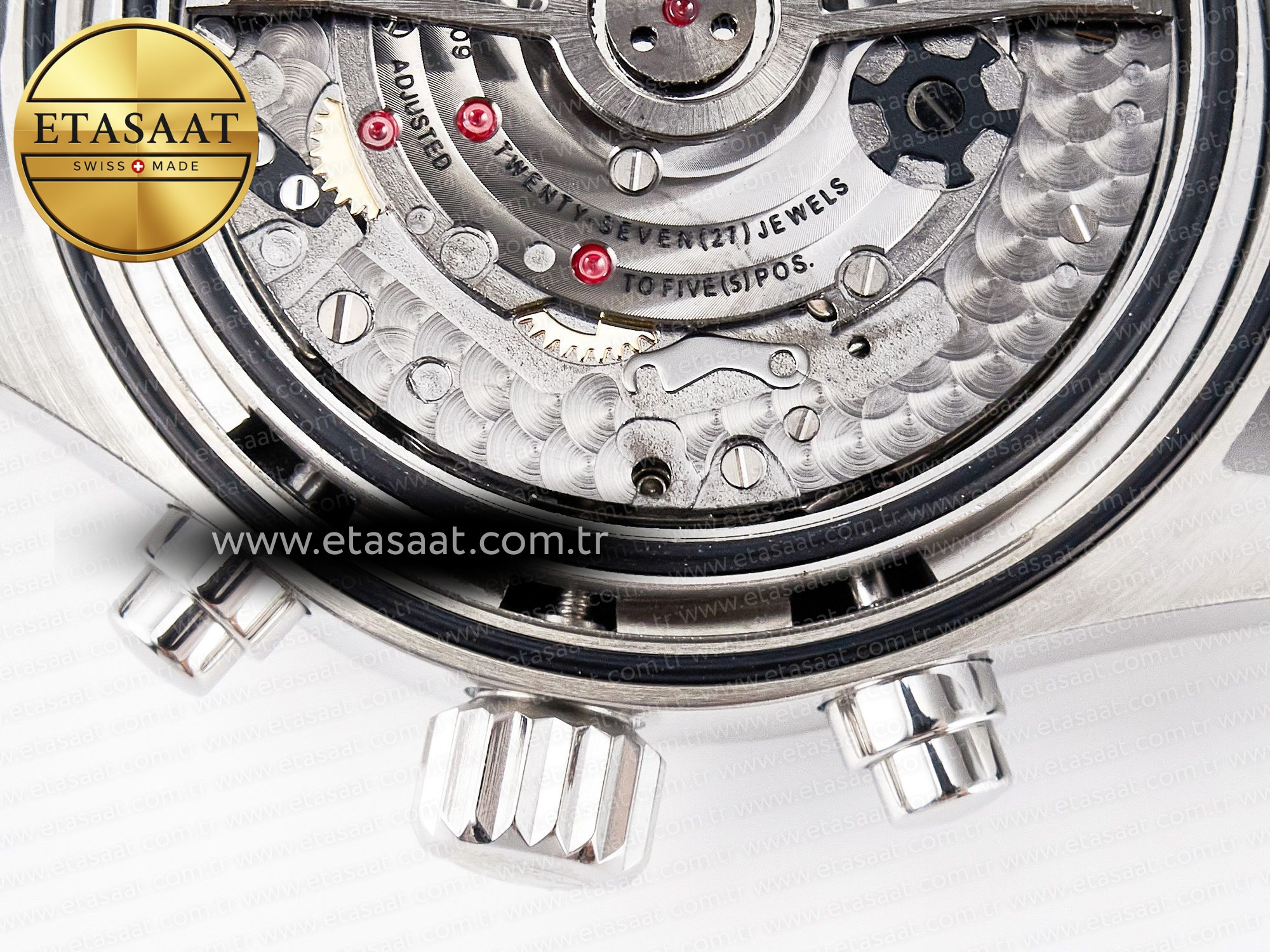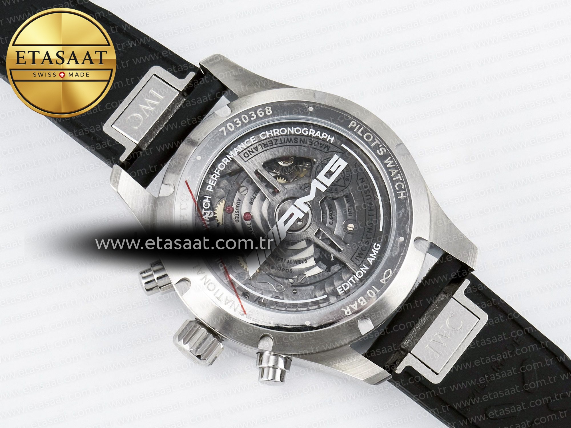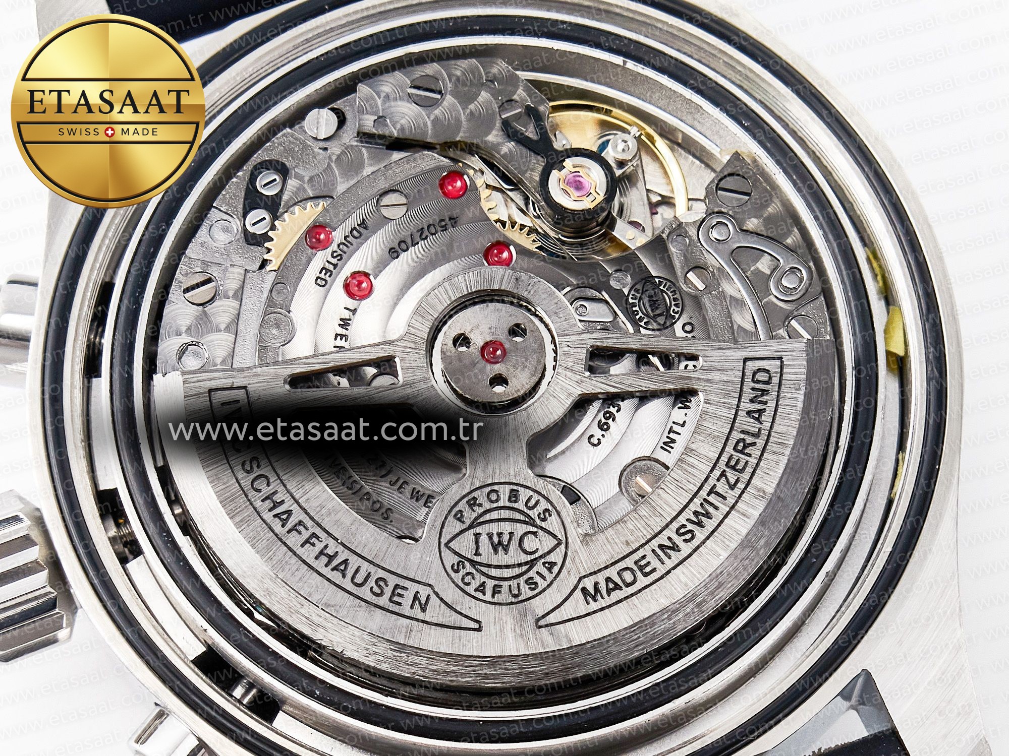 Movement: New IWC 69385 Movement Clone. Base Movement: Asian 7750 automatic chronograph movement 28800 vph; Decoration: Platinum plated movement plate and rotor which are made according to the genuine movement, the best looking IWC 69385 Movement Clone at the moment.