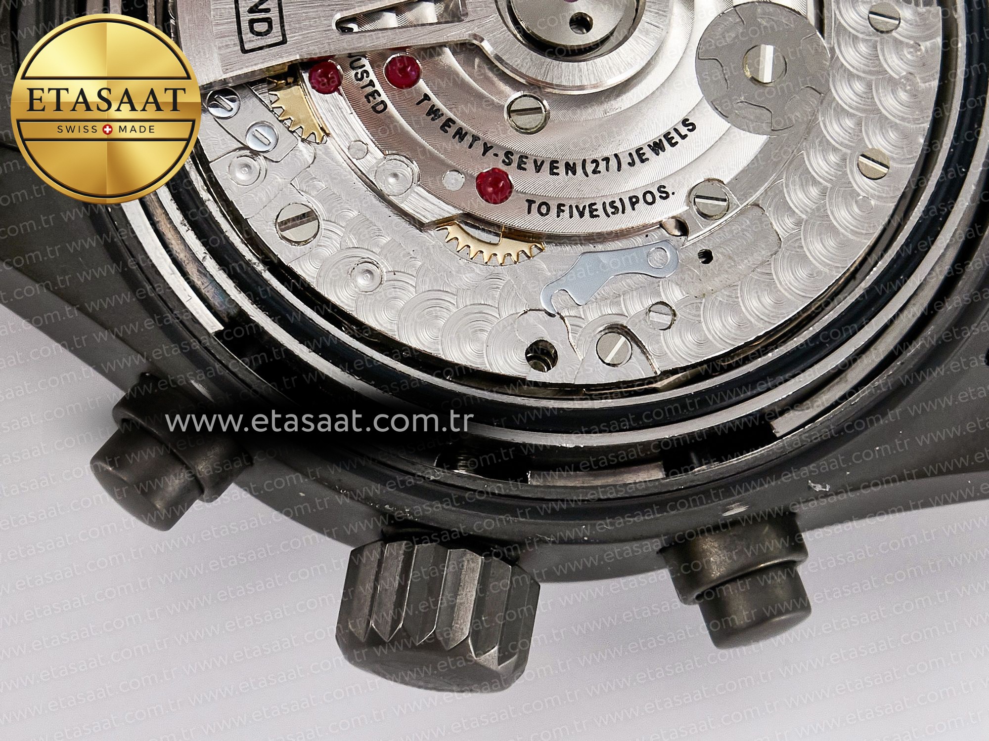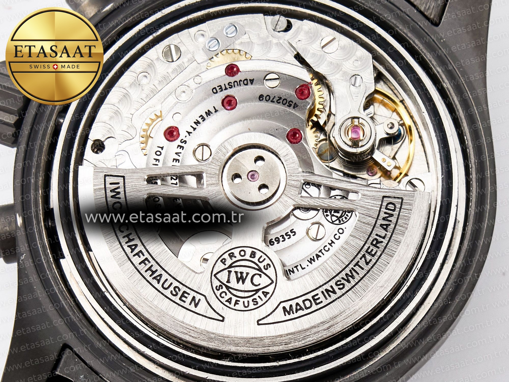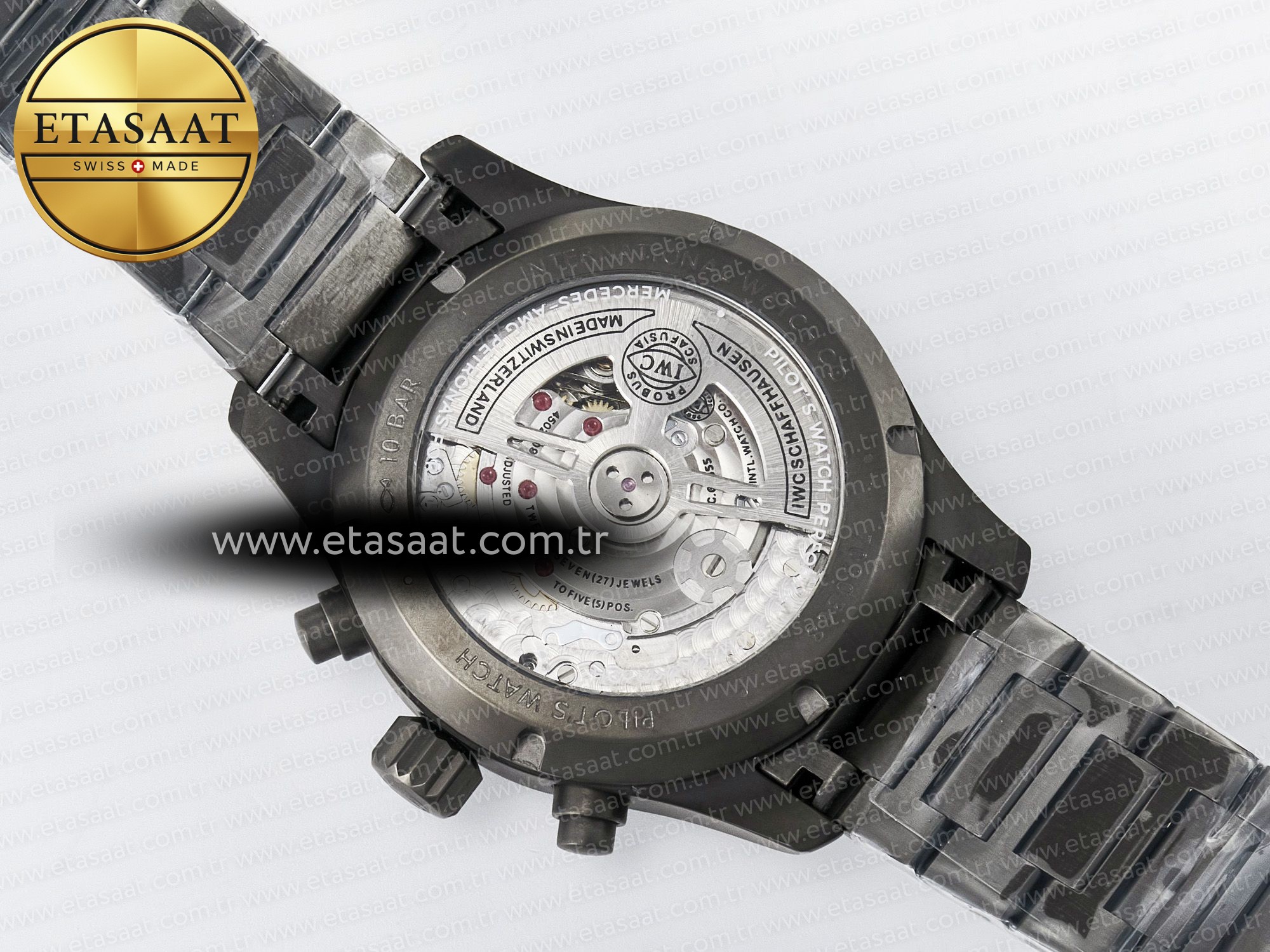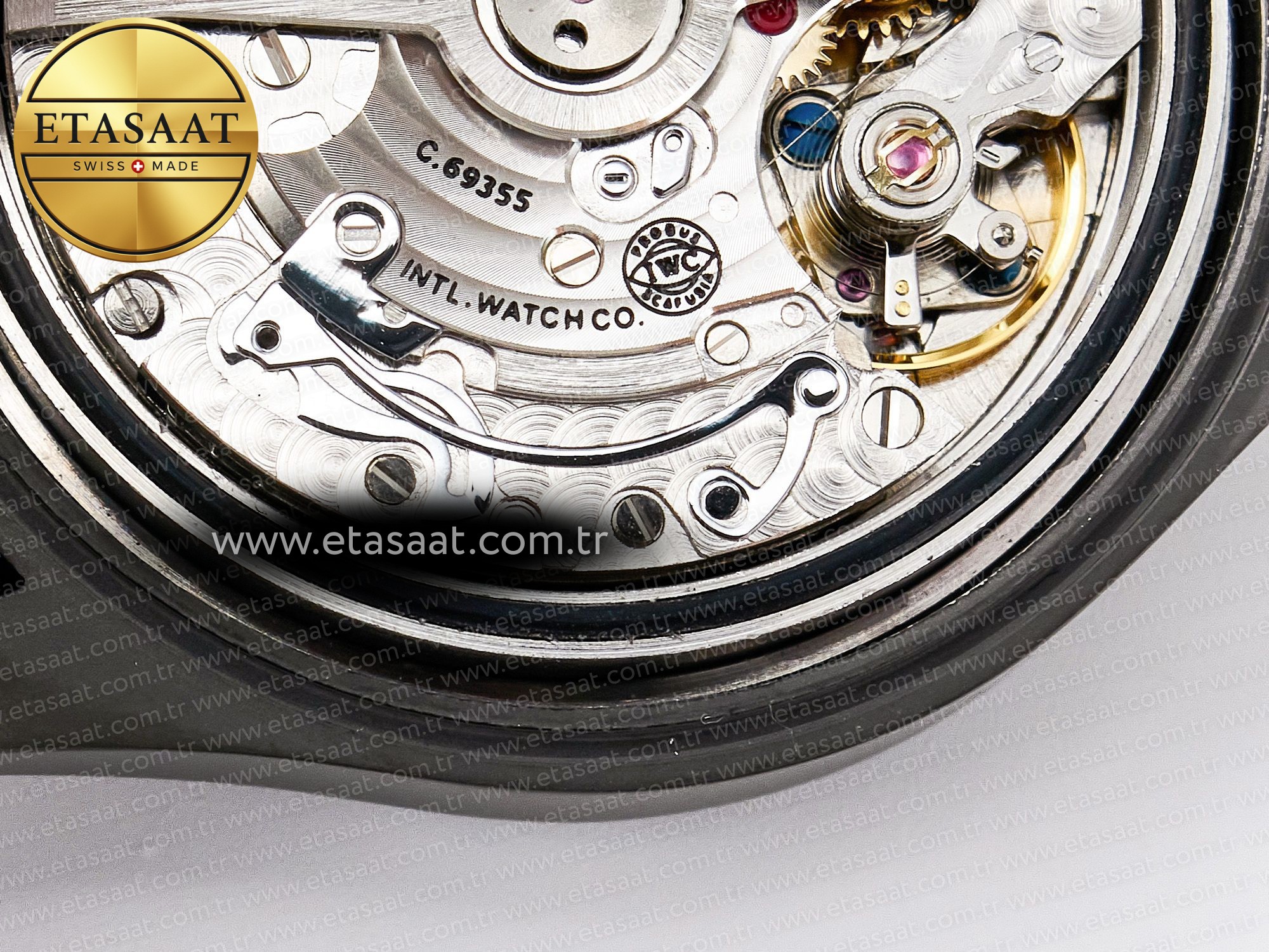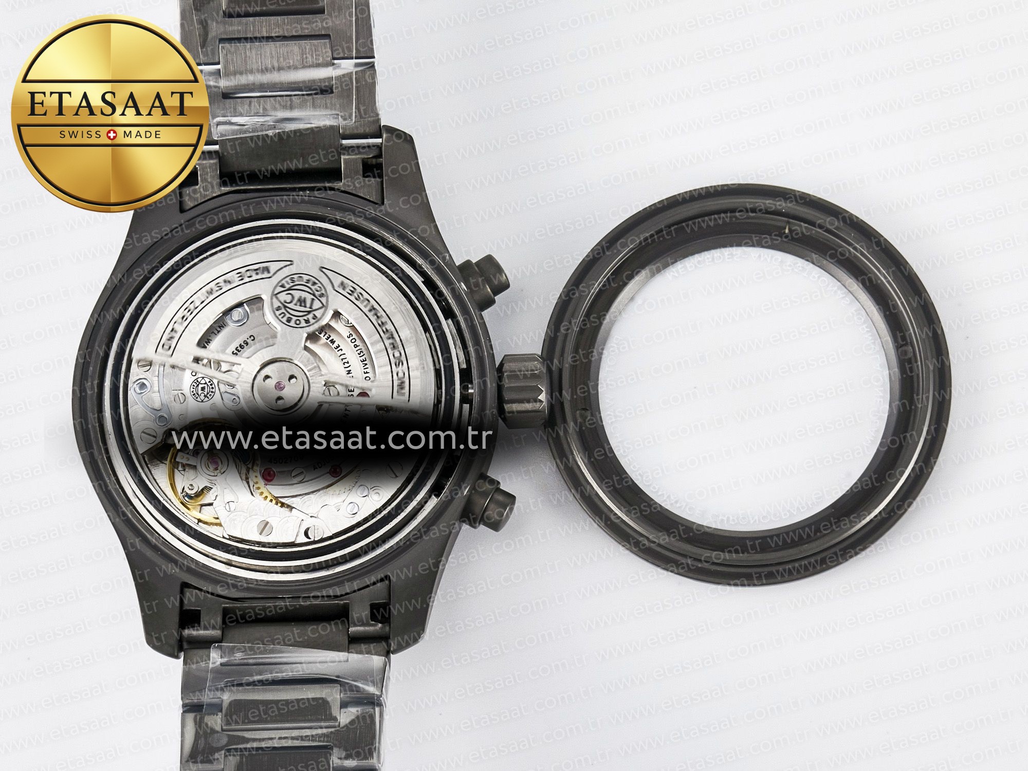 Movement: New IWC 69385 Movement Clone. Base Movement: Asian 7750 automatic chronograph movement 28800 vph; Decoration: Platinum plated movement plate and rotor which are made according to the genuine movement, the best looking IWC 69385 Movement Clone at the moment.