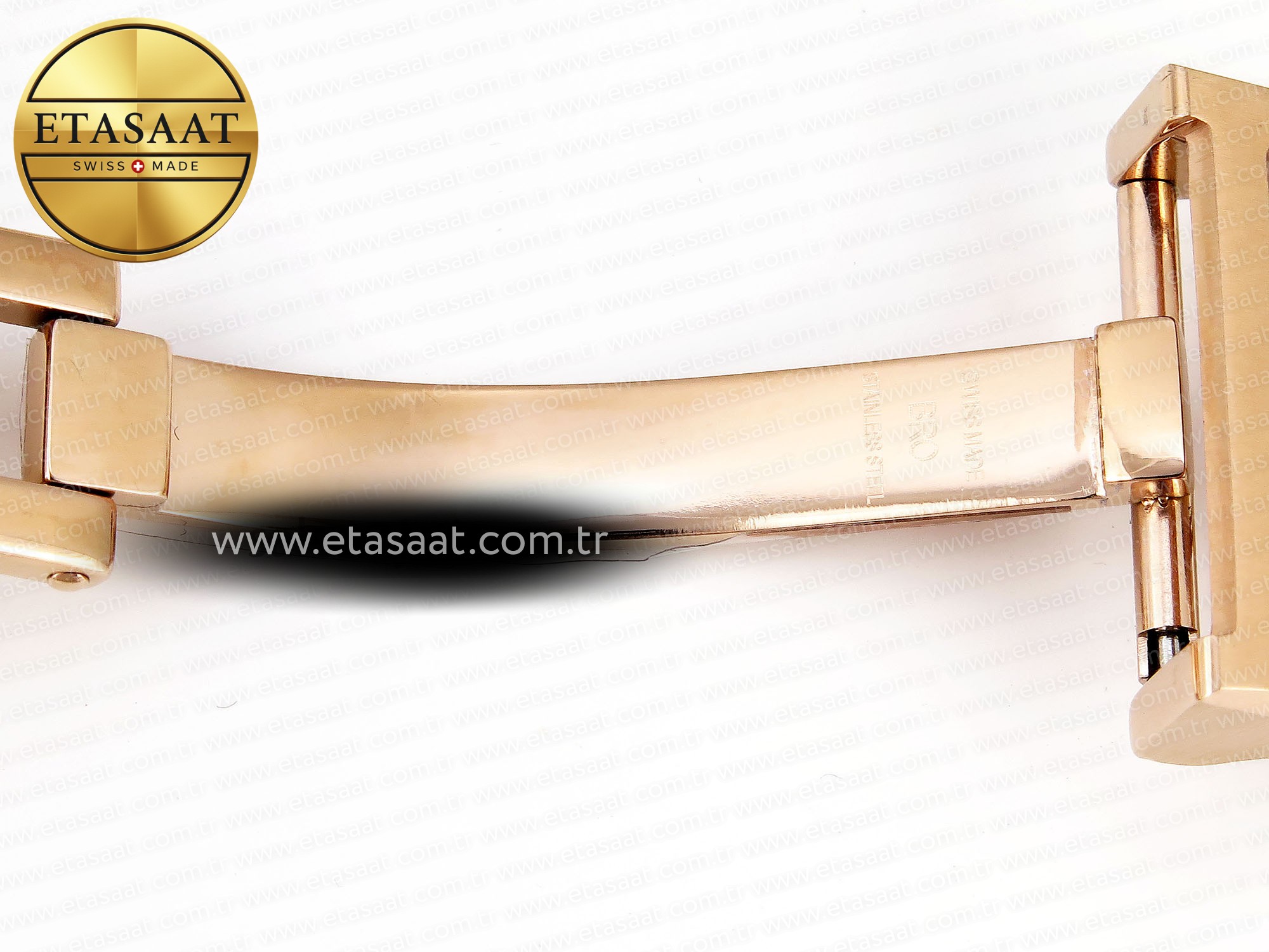 Case:: 18k rose gold plated solid 316L stainless steel case