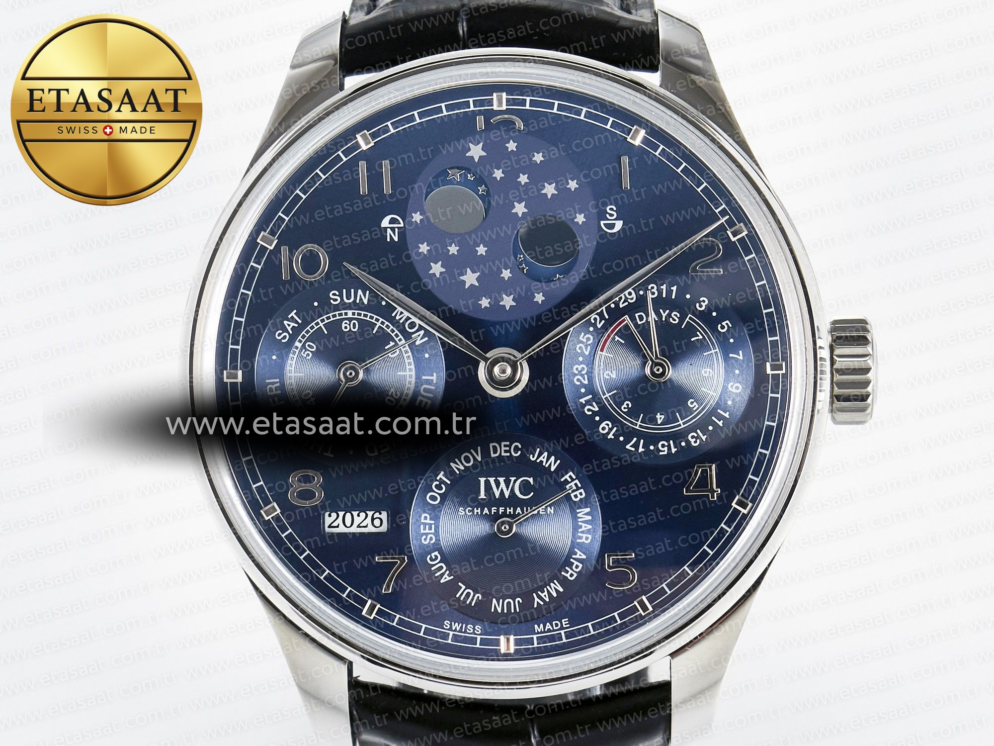 Portugieser Perpetual Calendar SS 5033 APSF 1:1 Best Edition Blue Dial on Black Leather Strap A52610 Clone