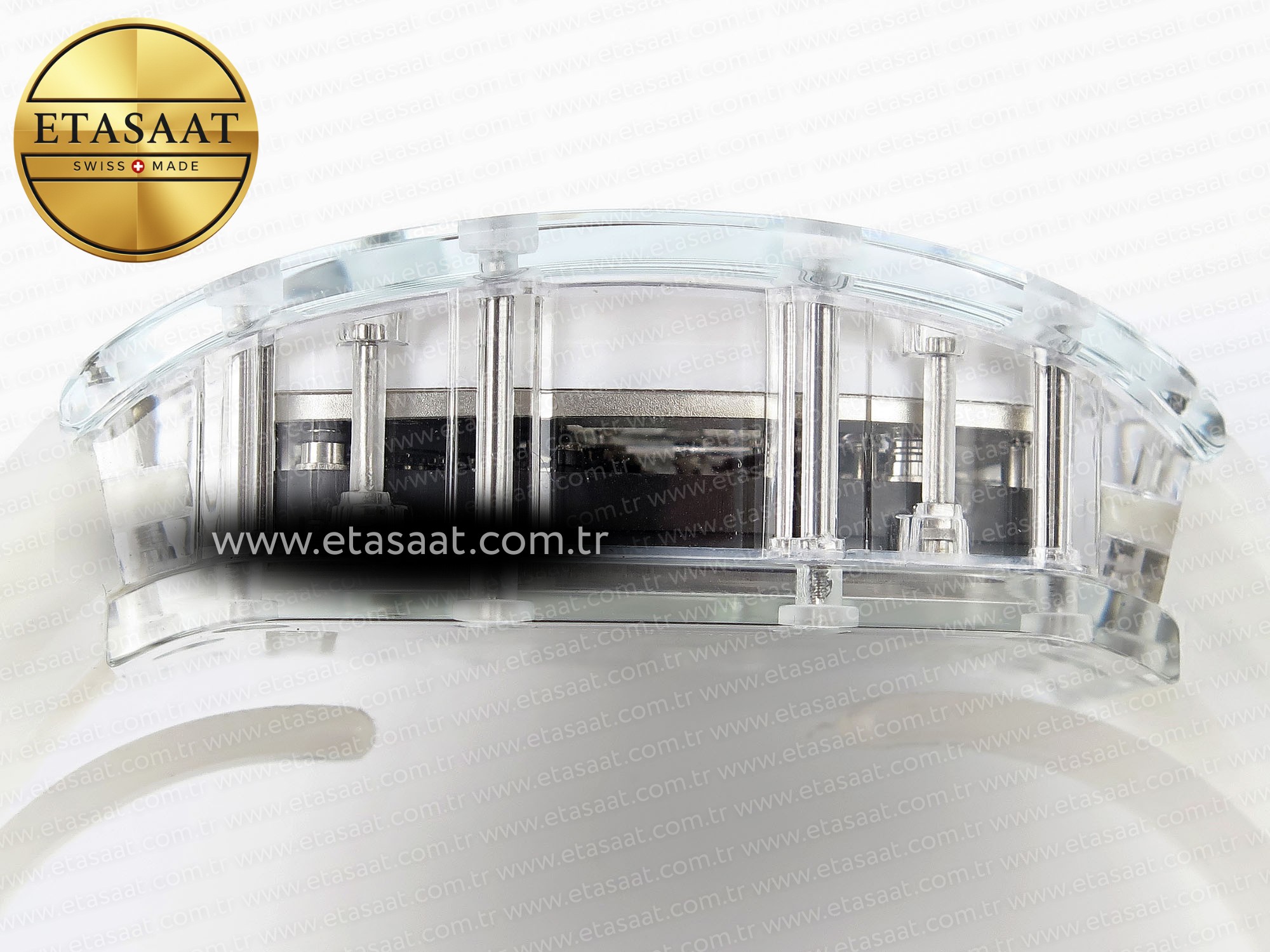 - Şeffaf Kompozit Kasa: Saatin iç mekanizmasını gözler önüne serer ve modern bir görünüm sunar.