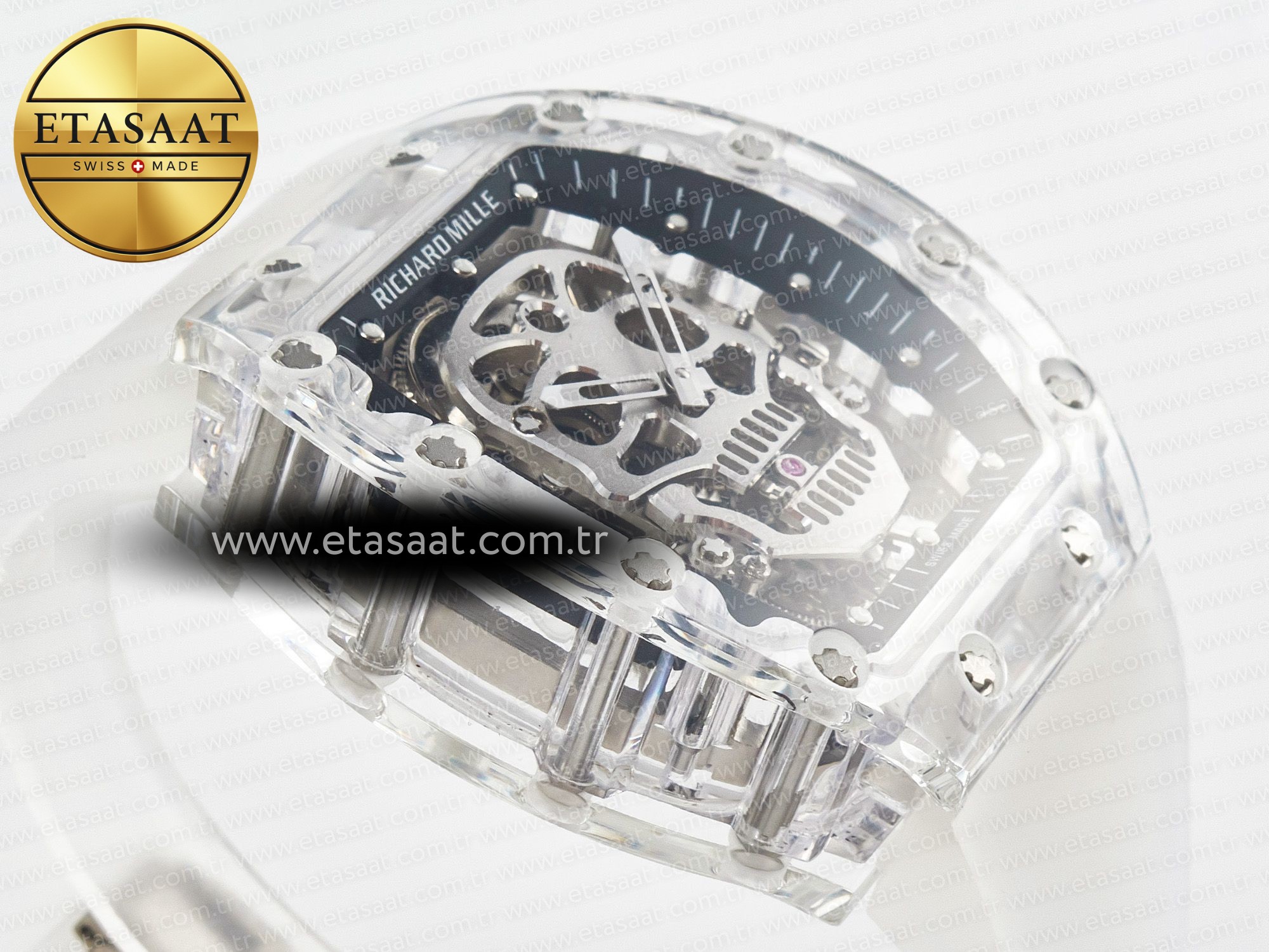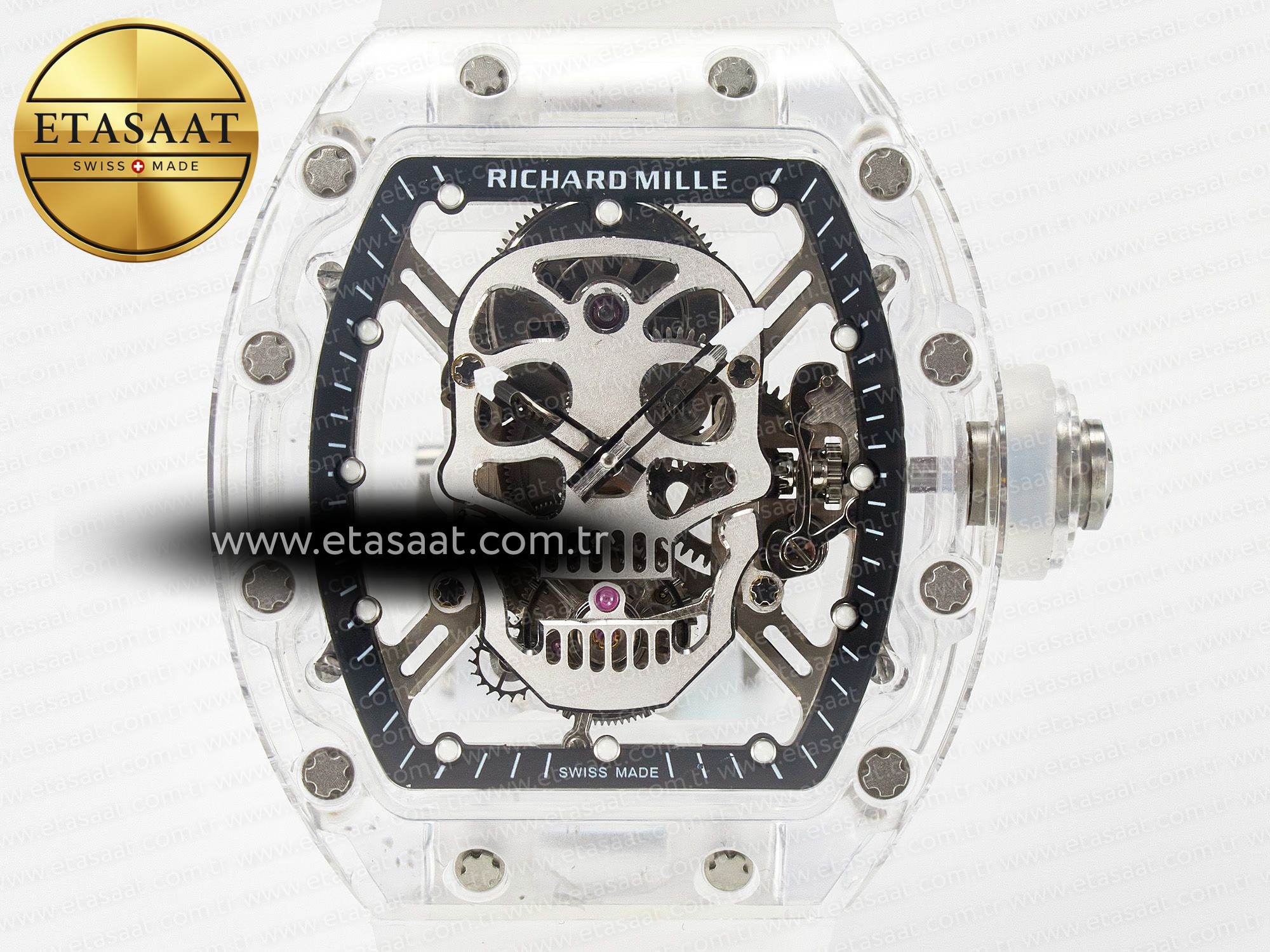 RM52-01 White Transparent Tourbillon MSF Best Edition Skull Dial on White Rubber Strap