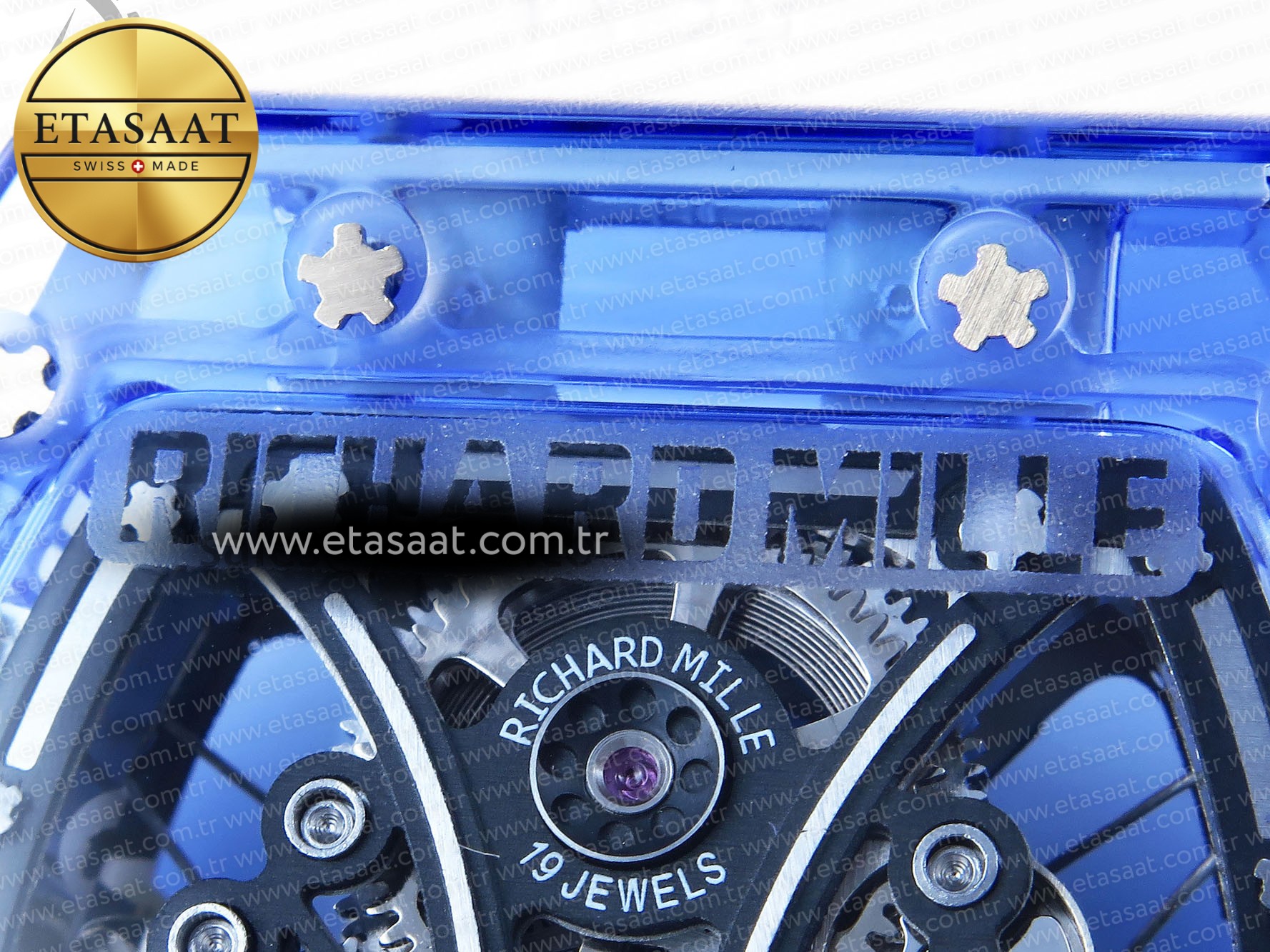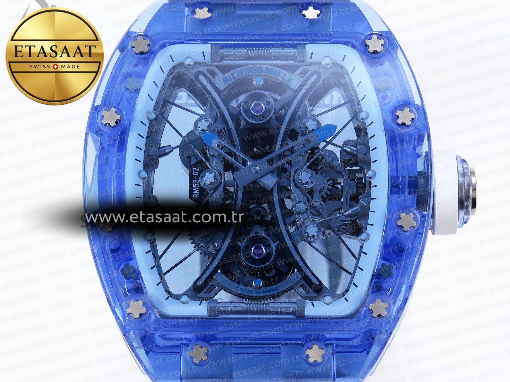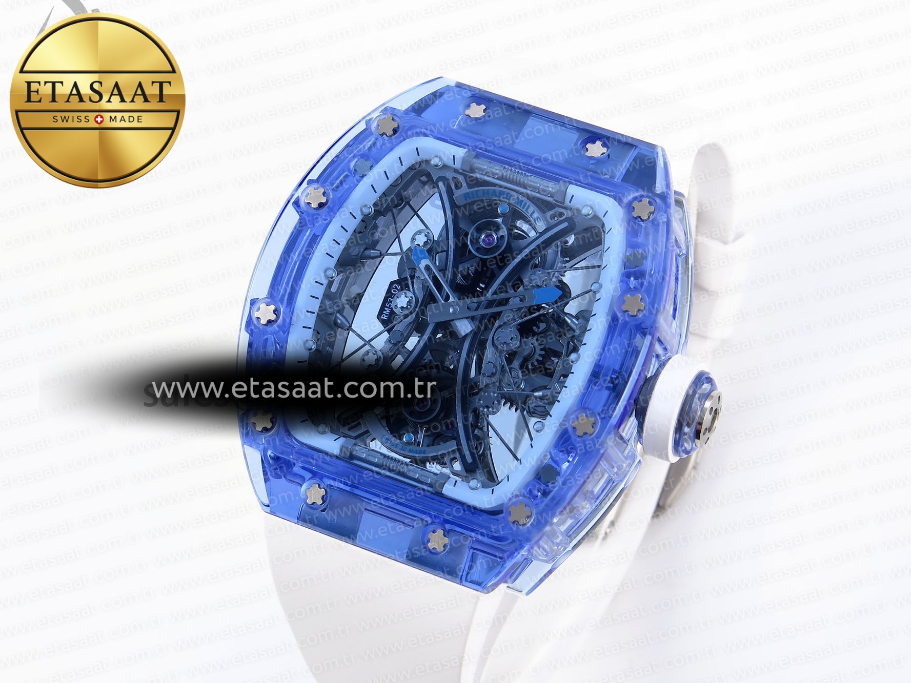RM53-02 BLUE TRANSPARENT TOURBILLON RMF BEST EDITION SKELETON DIAL ON WHITE RUBBER STRAP V2