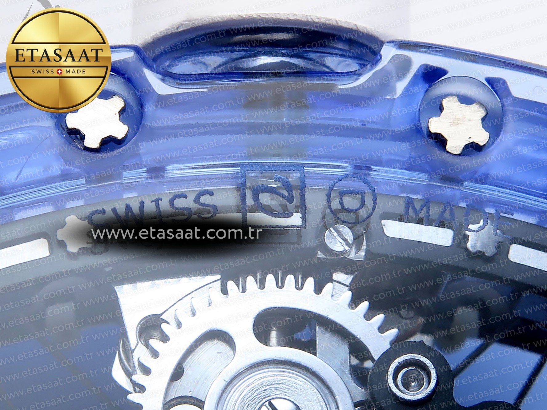 Case:: Blue transparent composite material case, sapphire bezel and caseback