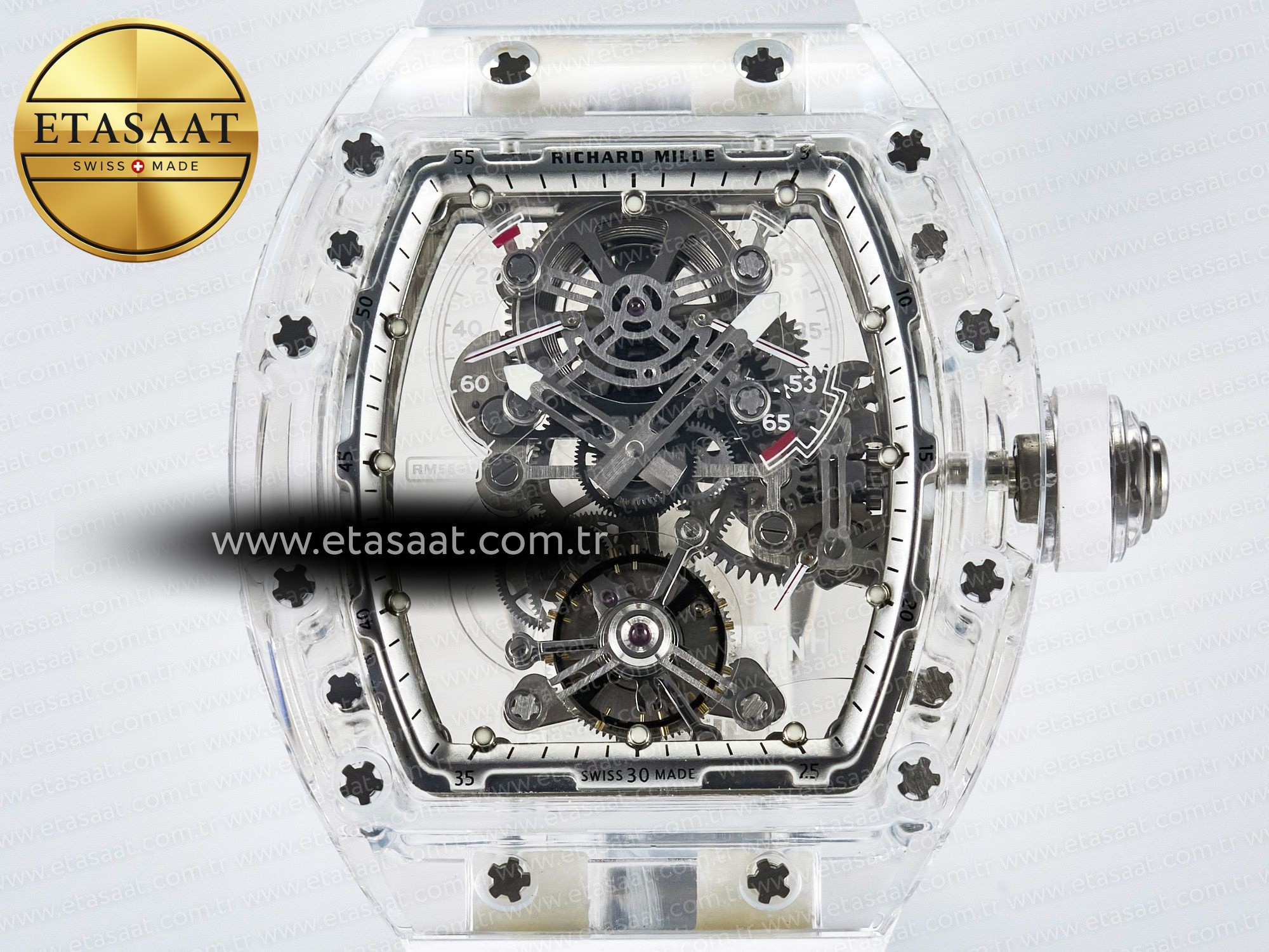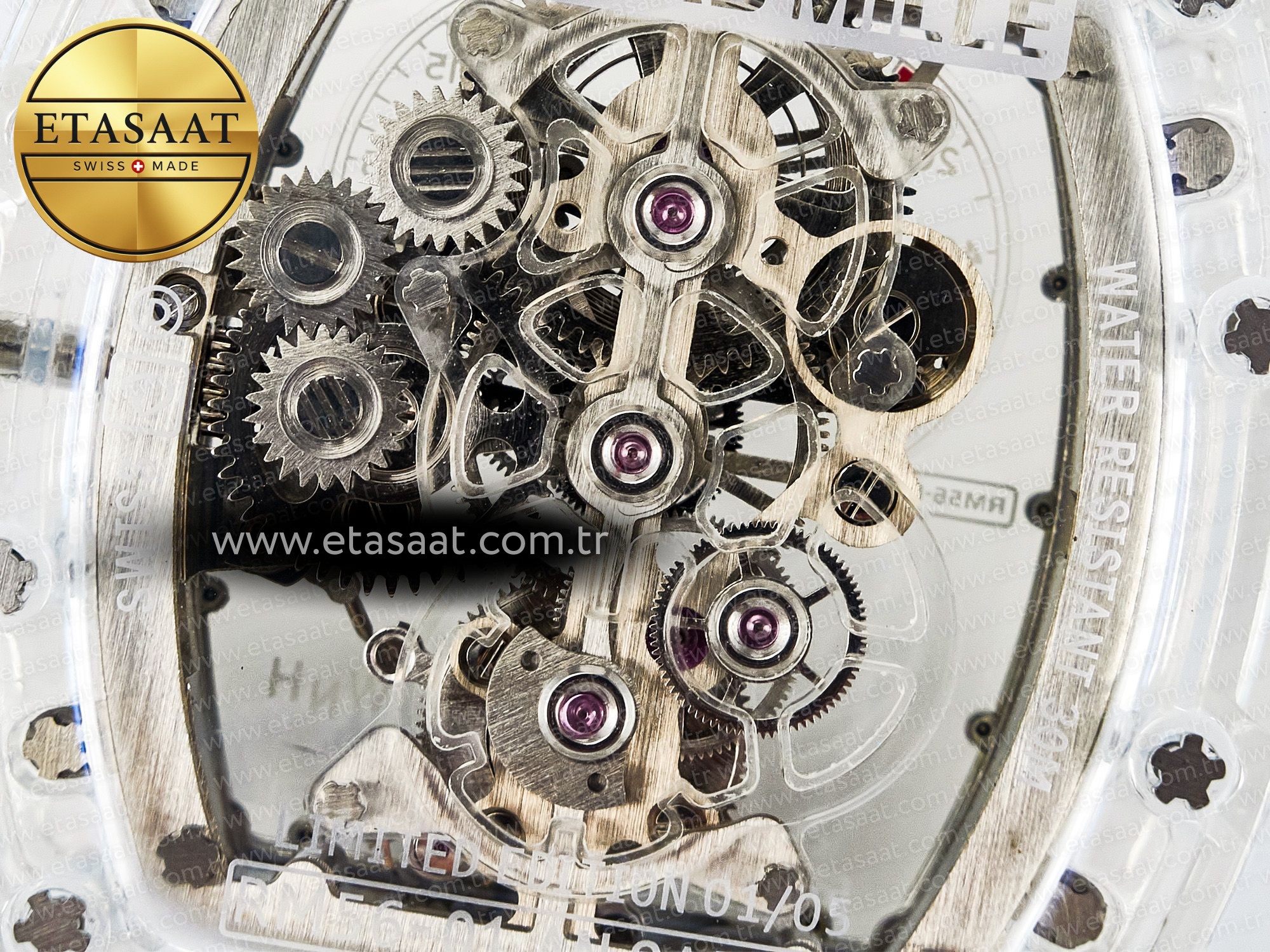 RM56-01 Transparent Tourbillon RMF Best Edition Skeleton Dial on White Rubber Strap