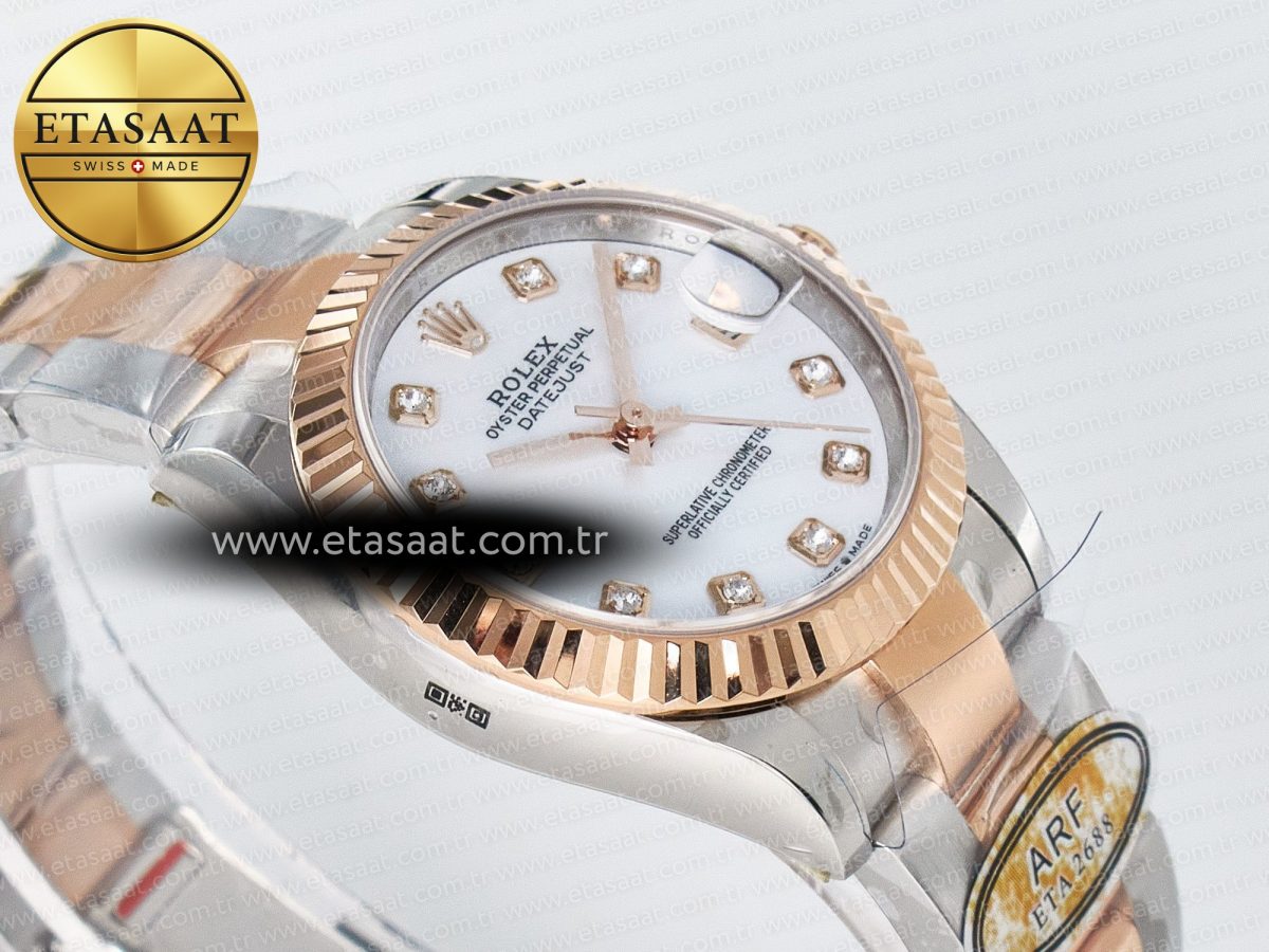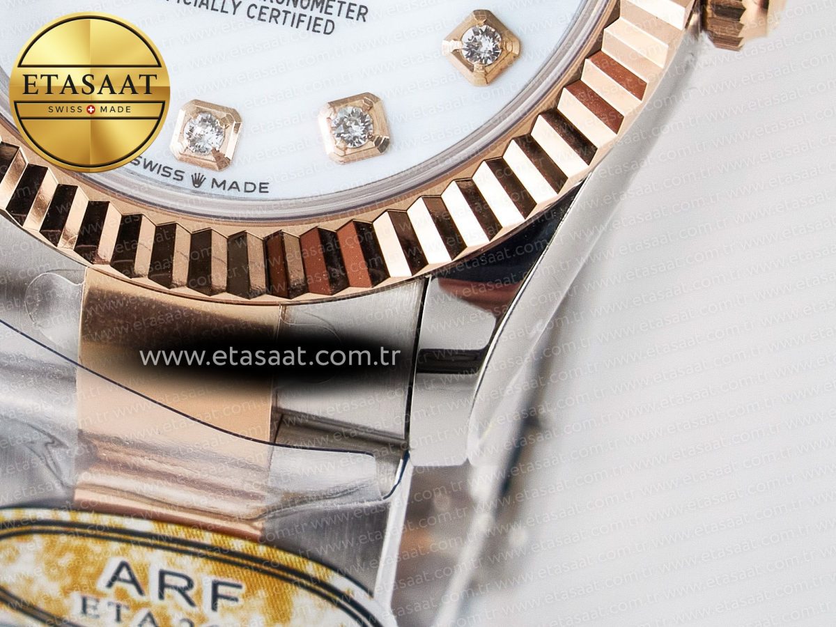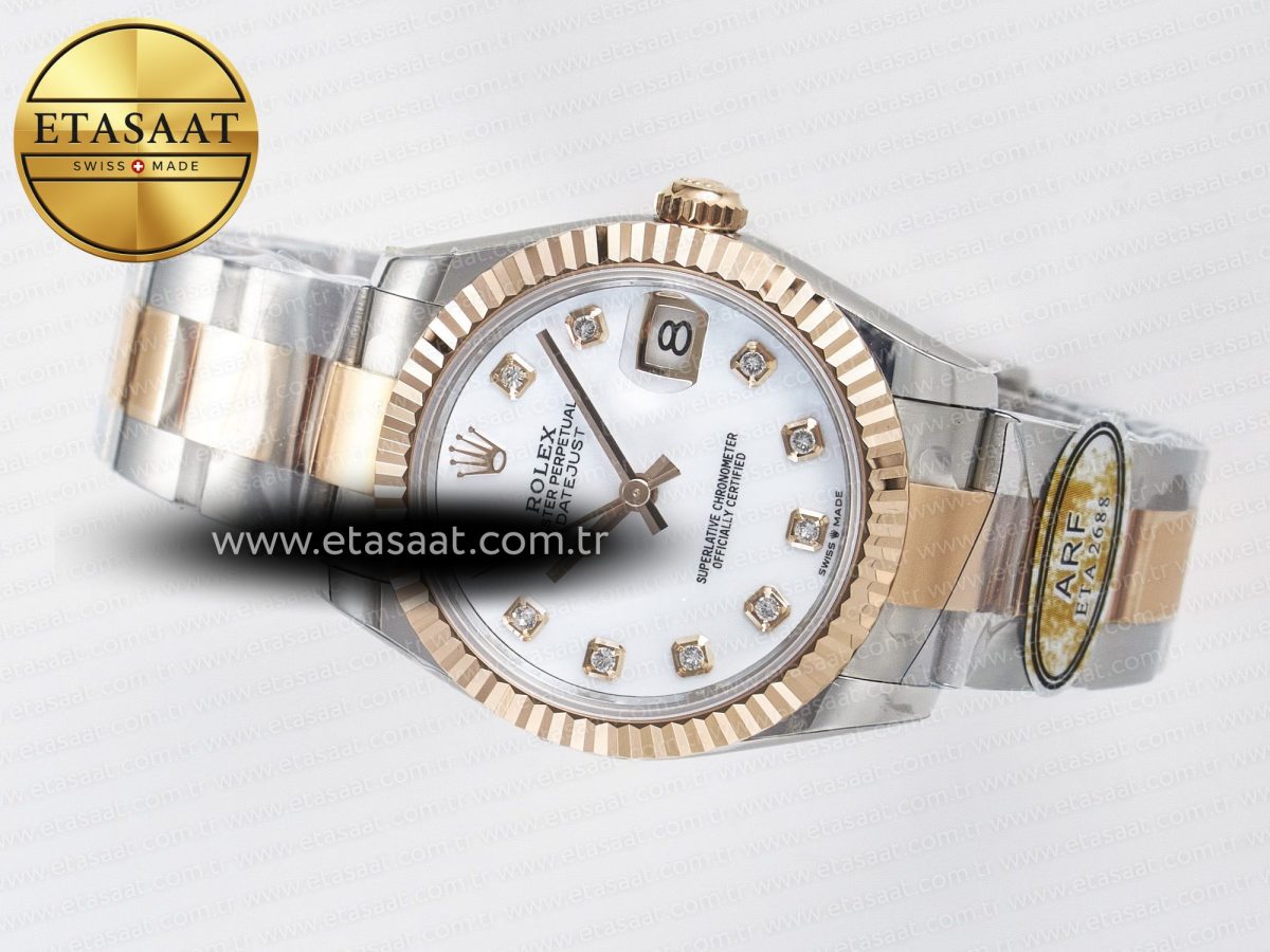 Rolex DateJust 31 278271 ARF 1:1, 904L çelik kasası, göz alıcı beyaz sedef (MOP) elmas kadranı ve 18k pembe altın kaplama detaylarıyla lüks ve zarafeti bir araya getiriyor. Bu özel saat, İsviçre yapımı ETA 2688 mekanizması sayesinde kusursuz bir zaman tutma deneyimi sunarken, ARF fabrikasının titiz işçiliğiyle üretilmiş 1:1 replikası olması, orijinaline en yakın mükemmellikte bir deneyim vadeder. Bileğinizde taşıdığınız her an, hem stilinizi tamamlayacak hem de dikkatleri üzerinize çekecek bir aksesuar arıyorsanız, Rolex DateJust 31 278271 tam size göre.