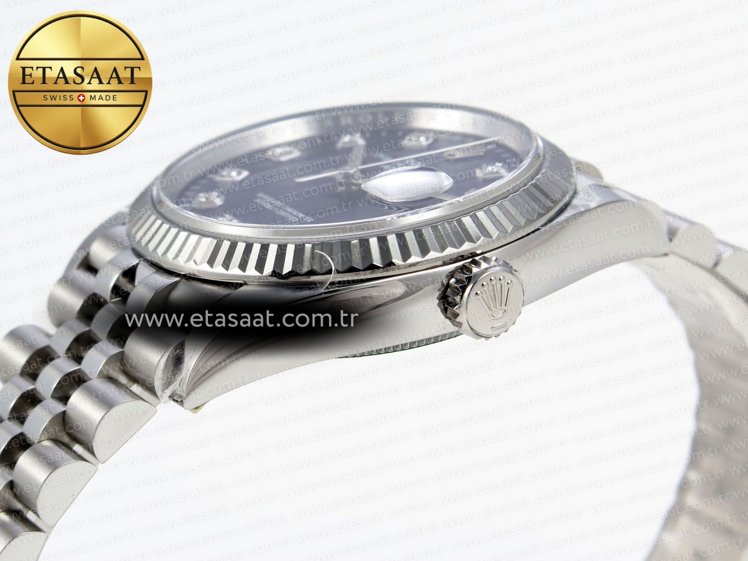 - Eşsiz Tasarım: Mavi dokulu elmas kadran ve Jubilee bilezik kombinasyonu, benzersiz bir görünüm sunar.