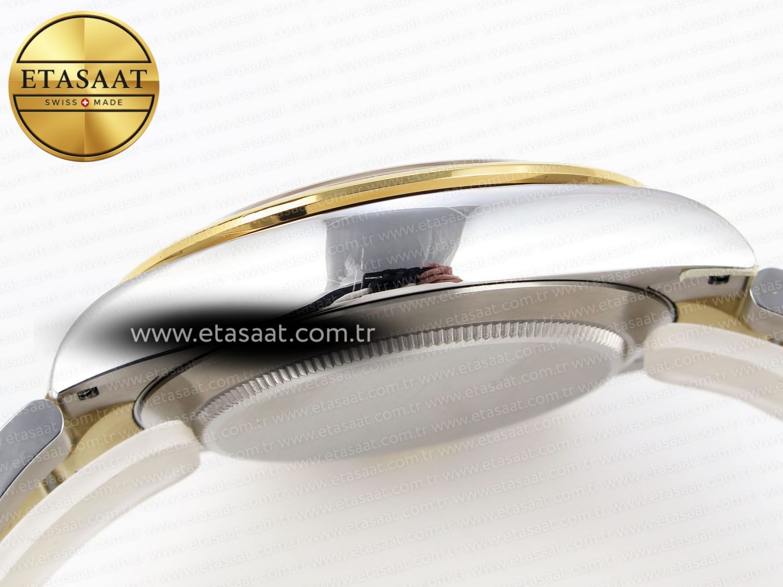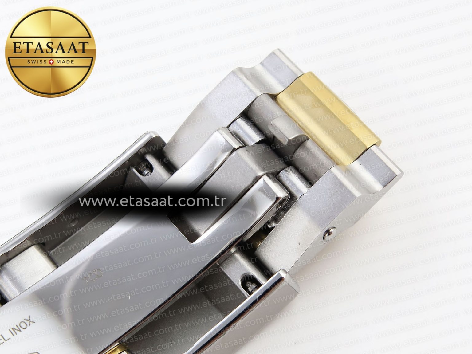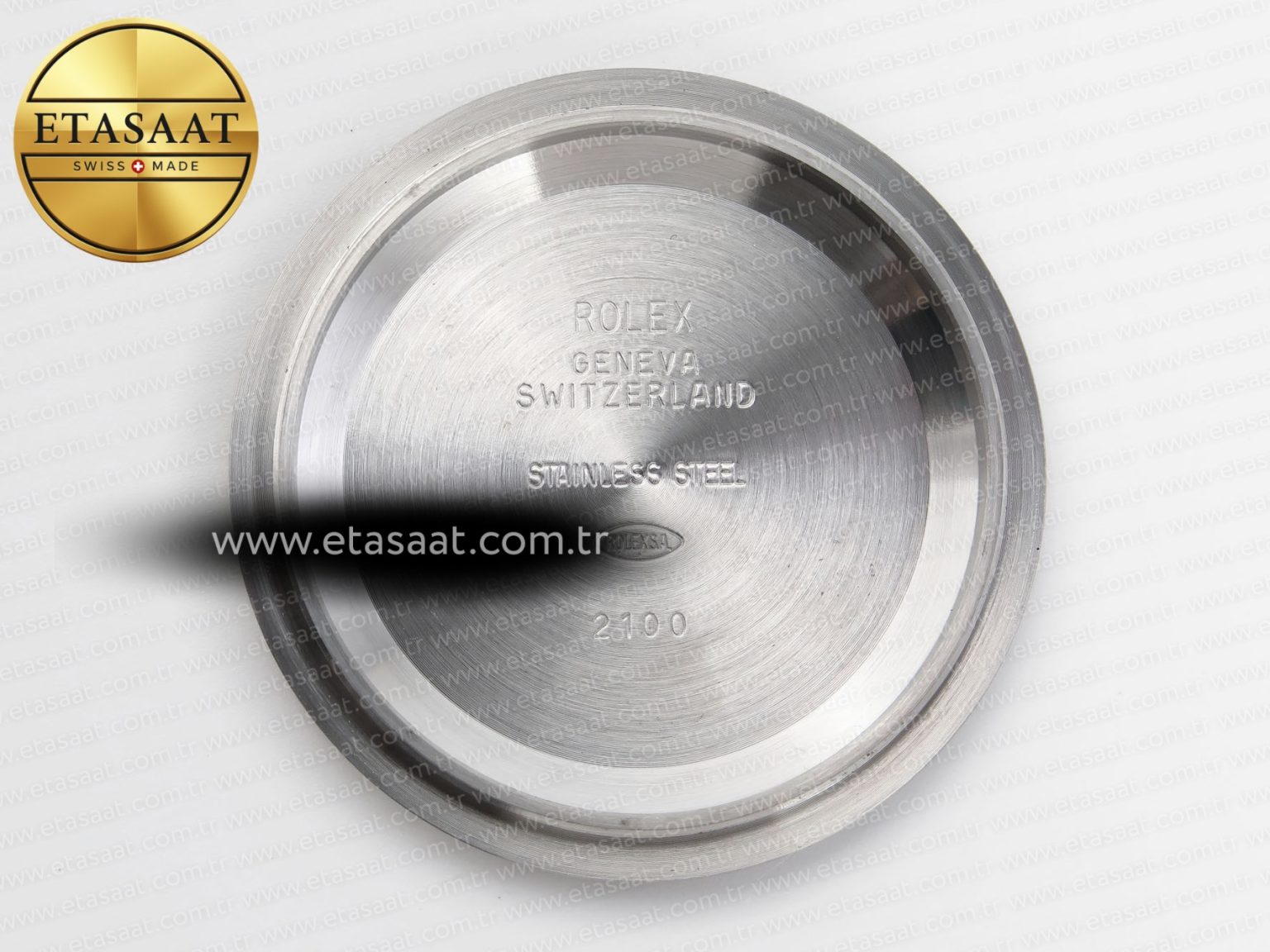 Saatin kadranı, beyaz renkte olup, Arap rakamları ile süslenmiştir. Bu, saatin okunabilirliğini artırırken, aynı zamanda şık ve zarif bir görünüm sunar. Saatin kasası, 1:1 oranında replike edilmiş 904L paslanmaz çelikten yapılmıştır. Bu, saatin dayanıklılığını artırırken, aynı zamanda paslanmaya karşı da koruma sağlar. Saatin camı, çizilmeye dayanıklı safir kristalden yapılmıştır ve saat 6 konumunda yarı görünmez bir taç işareti bulunur. Bu, orijinal Rolex saatlerinde bulunan bir özelliktir ve saatin orijinalliğini vurgular.