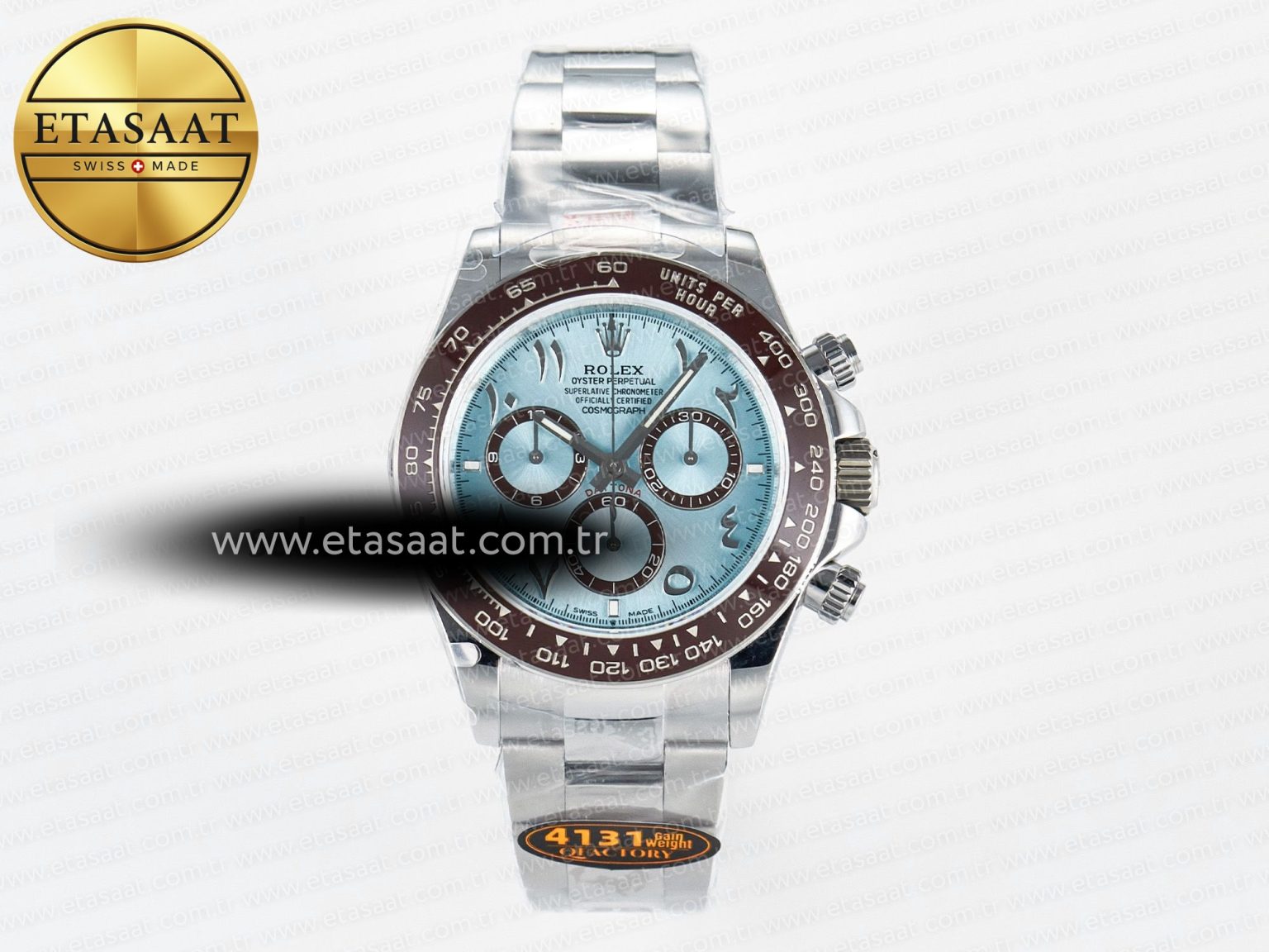 Rolex Daytona 126506 Arabic SH4131 V6, her detayıyla mükemmelliği hedefler. Asian Super Clone4131 mekanizması, 28800vph hızında çalışır ve 72 saatlik güç rezervi sunar. Bu, saatinizin uzun süre boyunca kesintisiz çalışmasını sağlar. Mekanizmanın mavi yayı, orijinal Rolex mekanizmasıyla aynıdır ve saatin otantik görünümünü tamamlar. Kronograf fonksiyonları, hassas ve güvenilir bir şekilde çalışır, bu da saatin hem şık hem de işlevsel olmasını sağlar.
