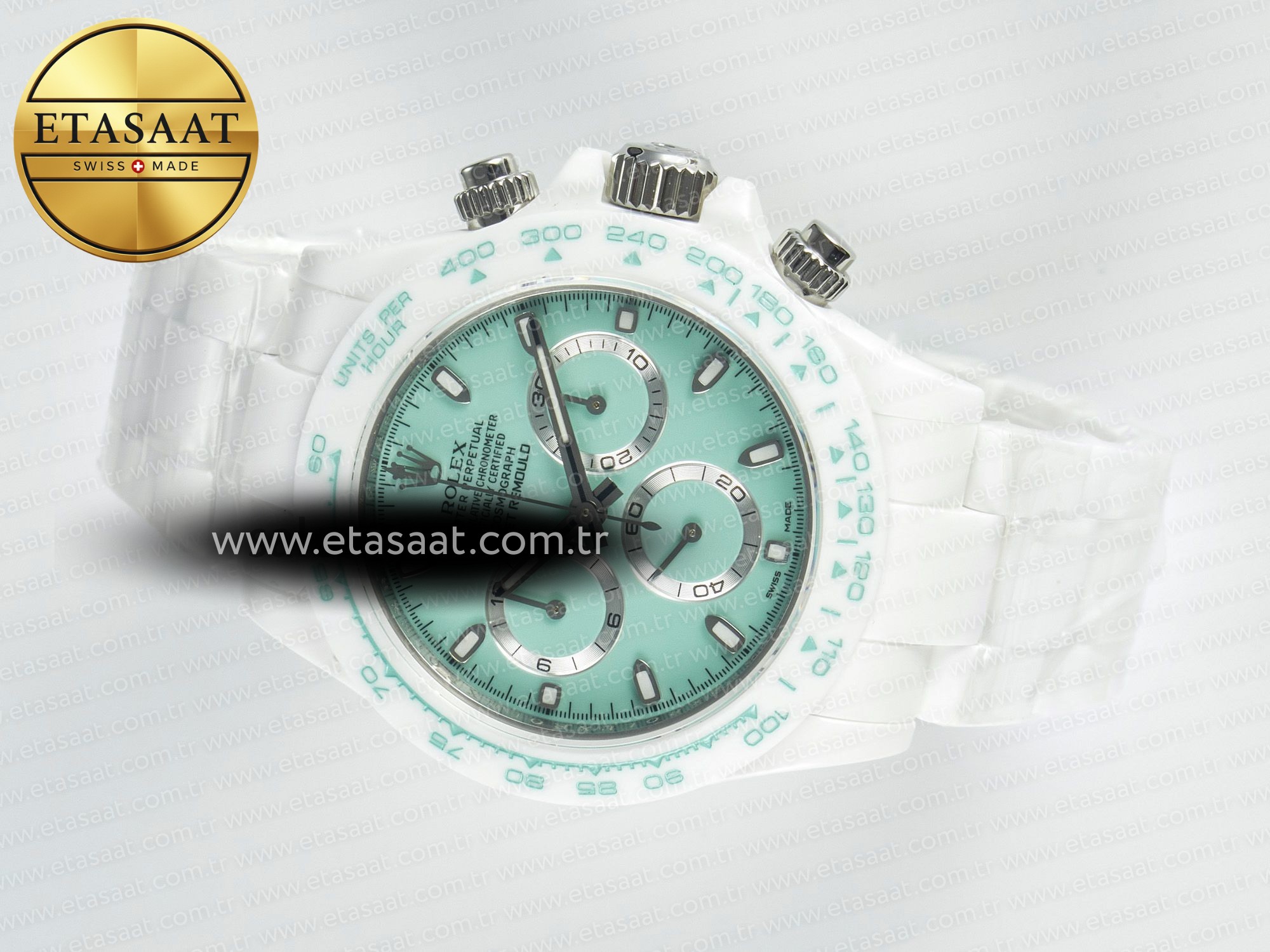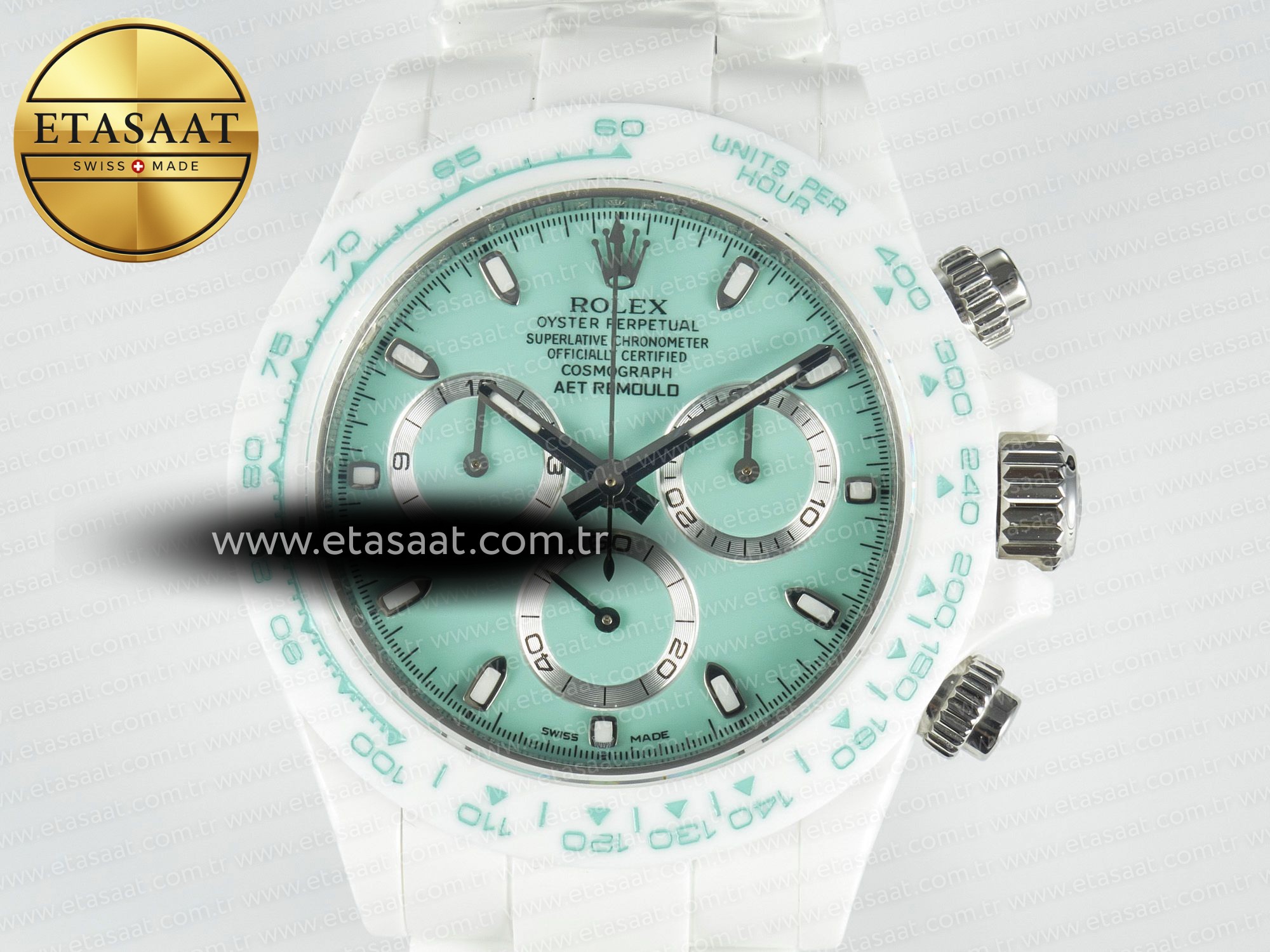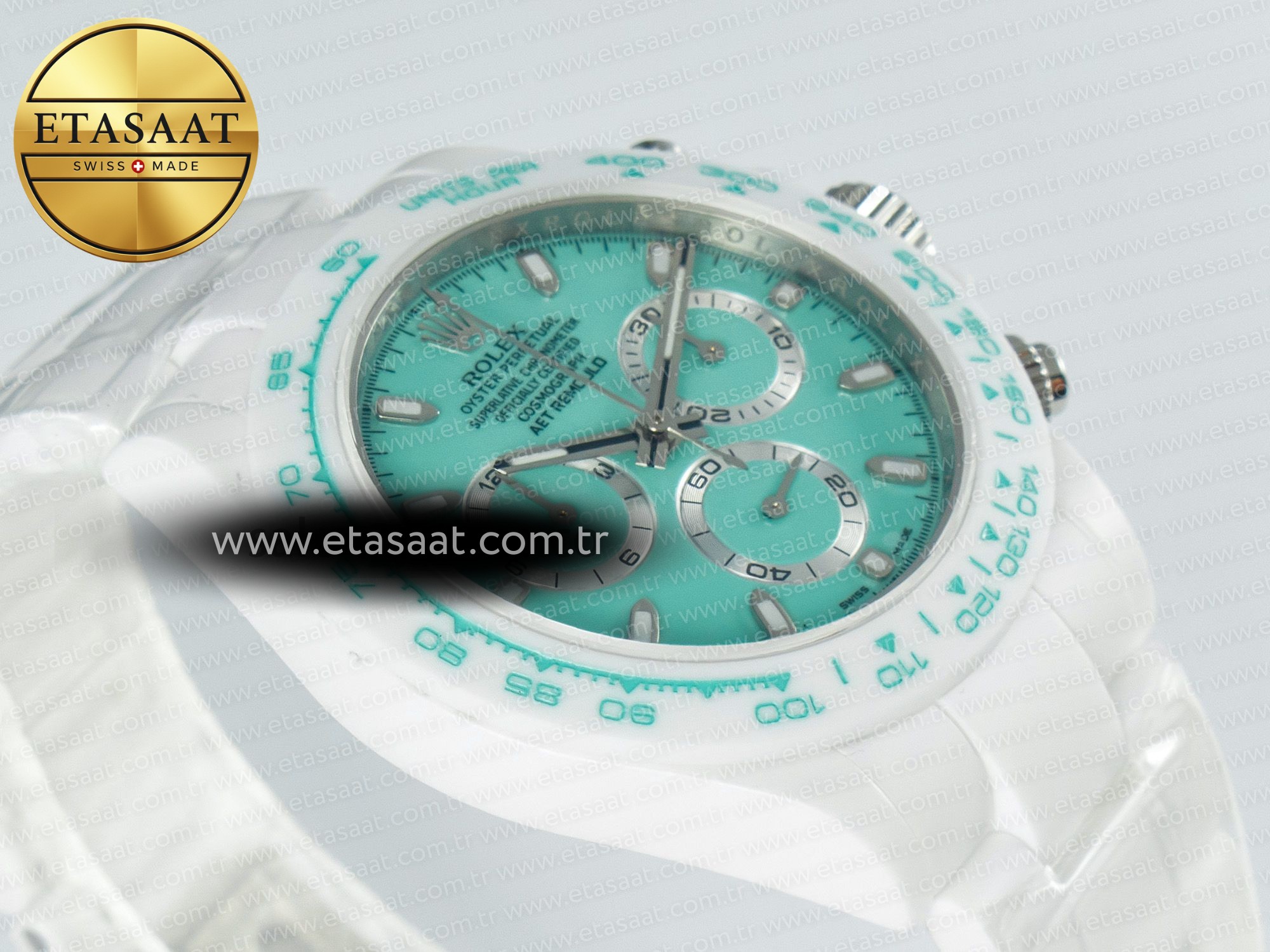 Rolex Daytona AET White Solid Ceramic, sadece bir saat değil, aynı zamanda bir statü sembolüdür. Bu saat, sizin stilinizi, zevkinizi ve başarınızı yansıtır. Her zaman dikkatleri üzerinize çekecek ve size hayranlık uyandıracak bir aksesuardır. Bu saatle, her anınızın değerini bilin ve hayatın tadını çıkarın.