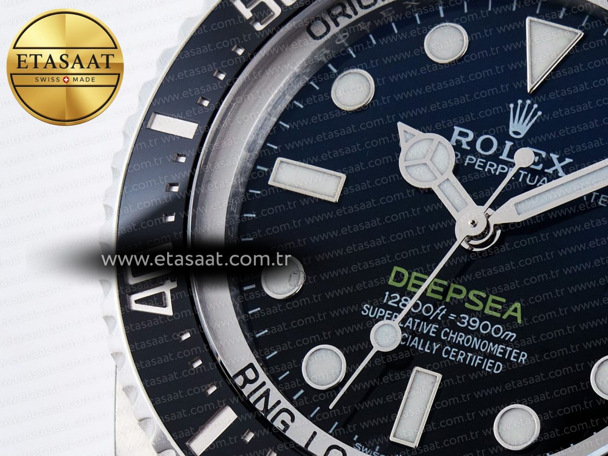 Bu özel saat, sadece görünümüyle değil, aynı zamanda sunduğu özelliklerle de dikkat çekiyor. 44mm kasa çapı, saatin bileğinizde dikkat çekici bir duruş sergilemesini sağlarken, 18mm kalınlığı ise dayanıklılığının bir göstergesi. VR3235 otomatik mekanizma, saatin kusursuz bir şekilde çalışmasını sağlarken, 28800bph titreşim frekansı ise hassas zaman ölçümü sunuyor. Tamamen dekore edilmiş rotor ve köprüler, orijinal Rolex Calibre 3235’i taklit ederek saatin iç dünyasına ayrı bir değer katıyor. Saat, dakika, saniye ve tarih göstergesi gibi temel fonksiyonları eksiksiz bir şekilde yerine getirirken, çizilmeye dayanıklı safir kristal cam ise kadranın her zaman berrak ve okunabilir kalmasını sağlıyor. Rolex Deep Sea-Dweller 126660, sadece bir saat değil, aynı zamanda bir mühendislik harikasıdır.