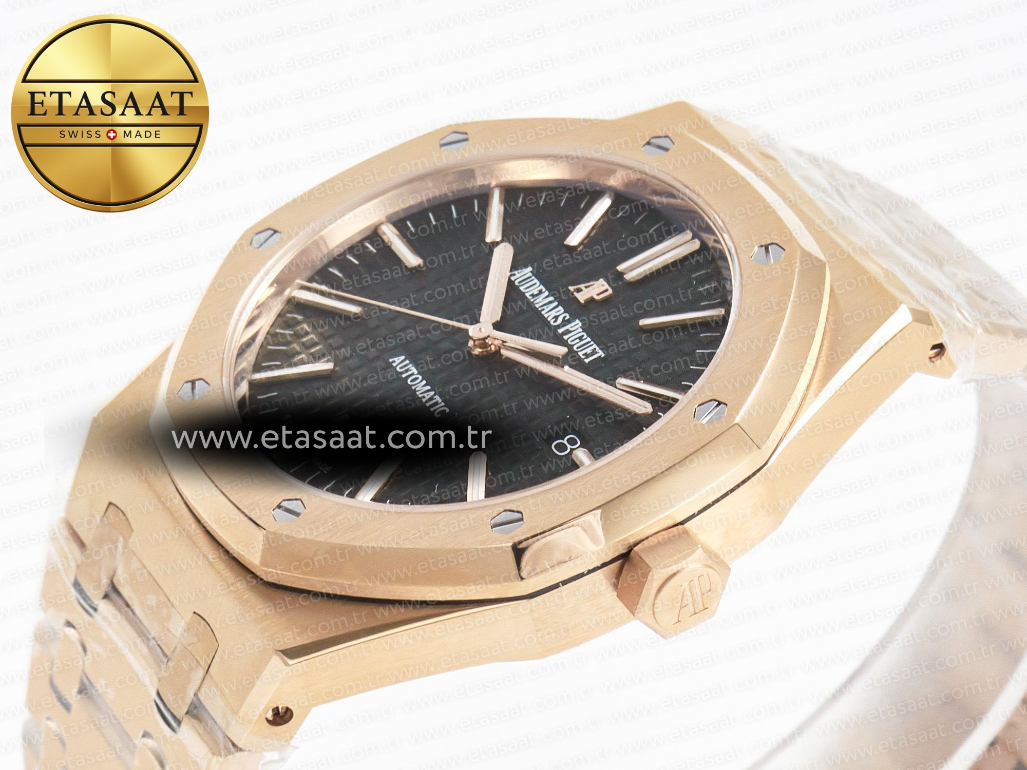 Royal Oak 41mm 15400 RG ZF 1:1 Best Edition Black Textured Dial on RG Bracelet V2 SA3120 Super Clone