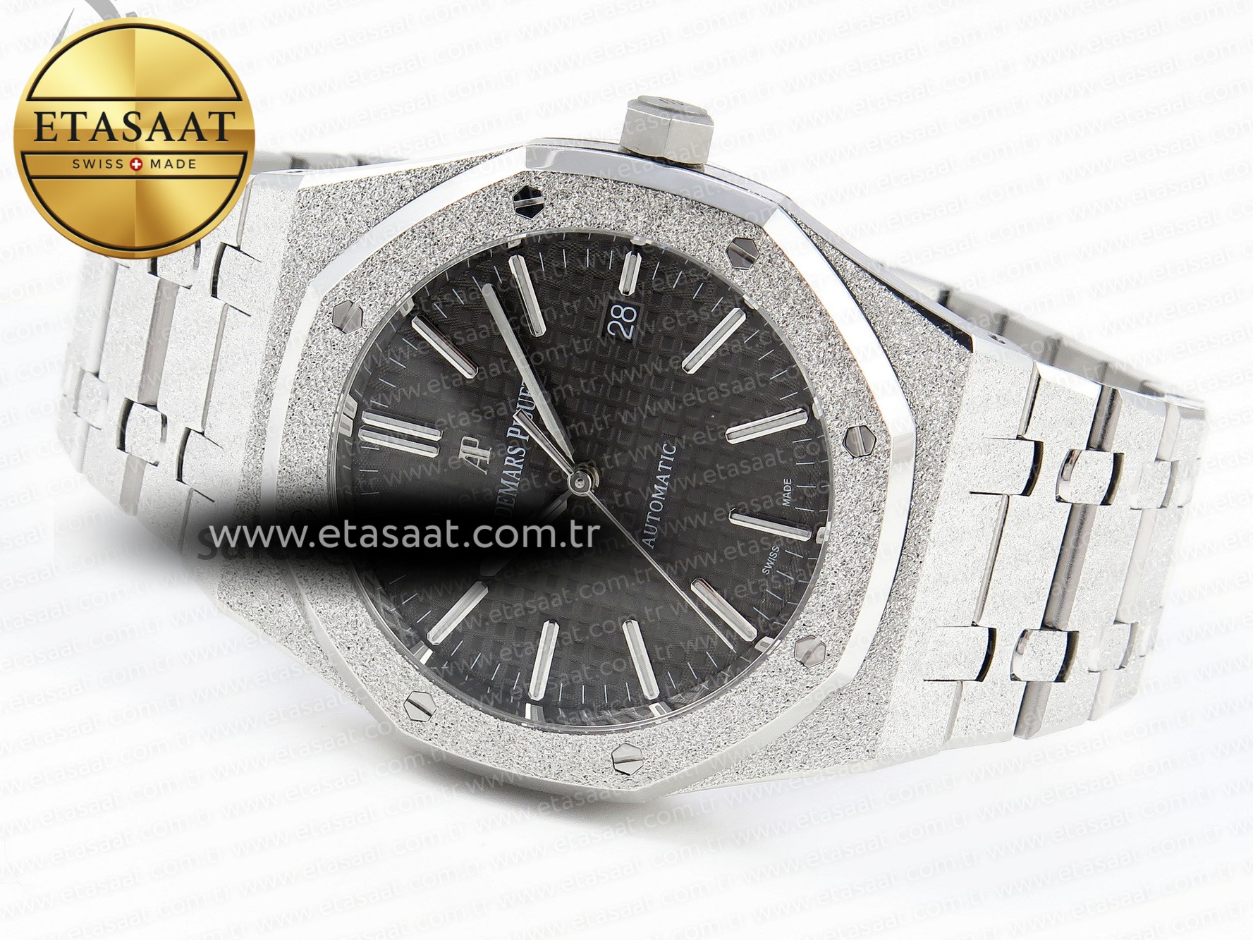 Royal Oak 41MM FROSTED SS APSF 1:1 BEST EDITION GRAY TEXTURED DIAL ON SS BRACELET SA3120 SUPER CLONE