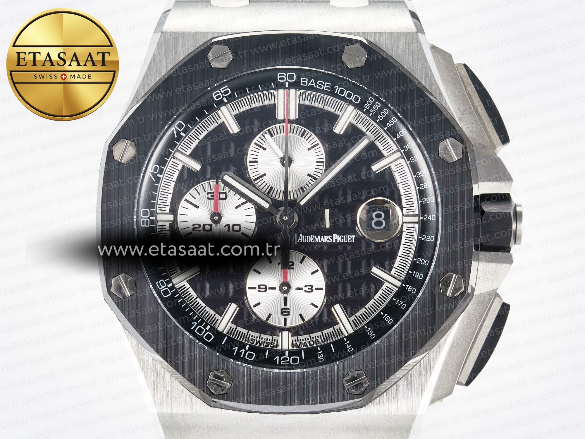 Royal Oak Offshore 44mm Black Ceramic SS TKF 1:1 Best Edition Black/White Dial on Black Rubber Strap A3126