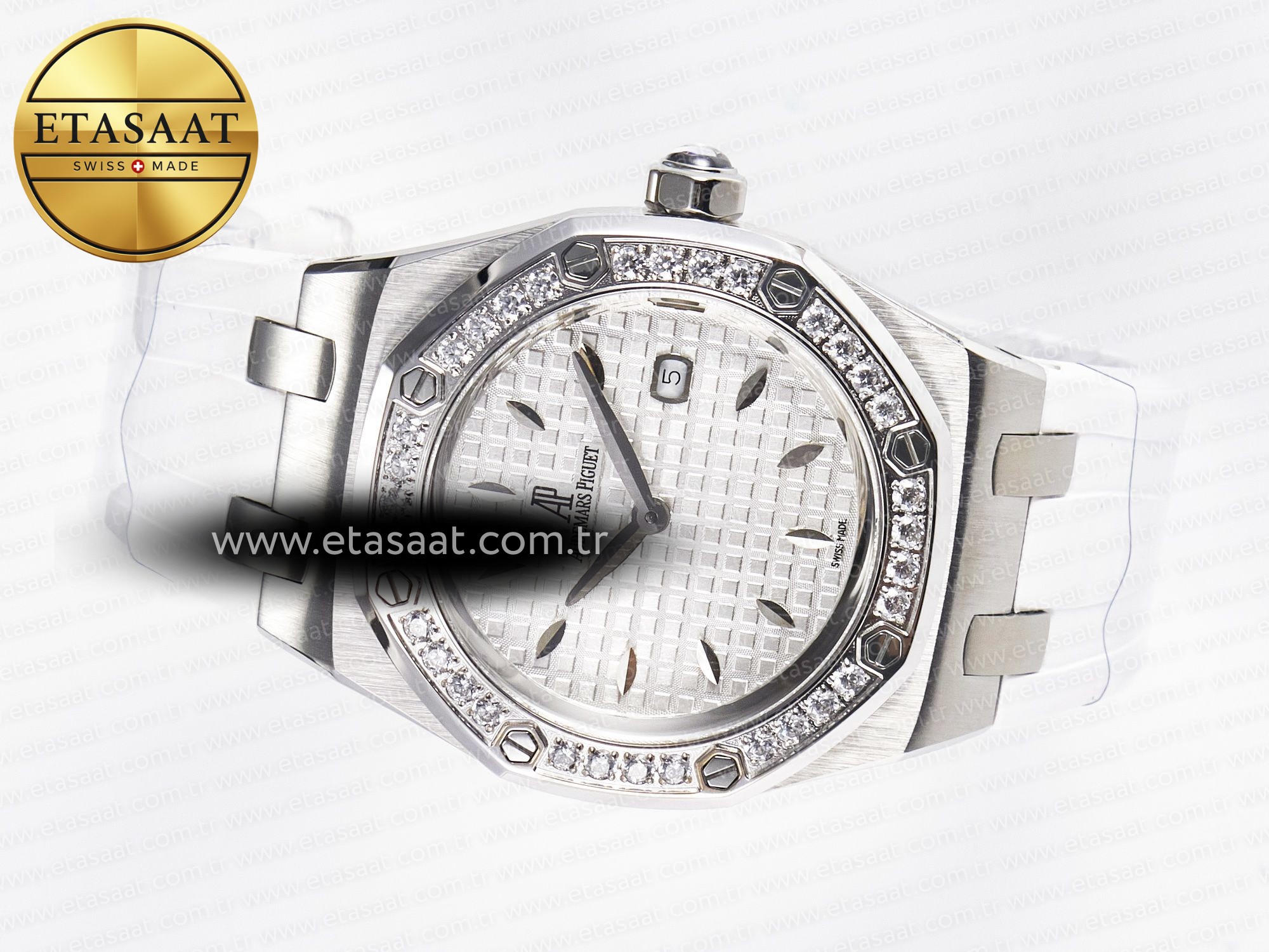 Royal Oak Offshore Ladies 33mm SS DRF Best Edition White Dial Diamonds Bezel on White Rubber Strap ETA Quartz