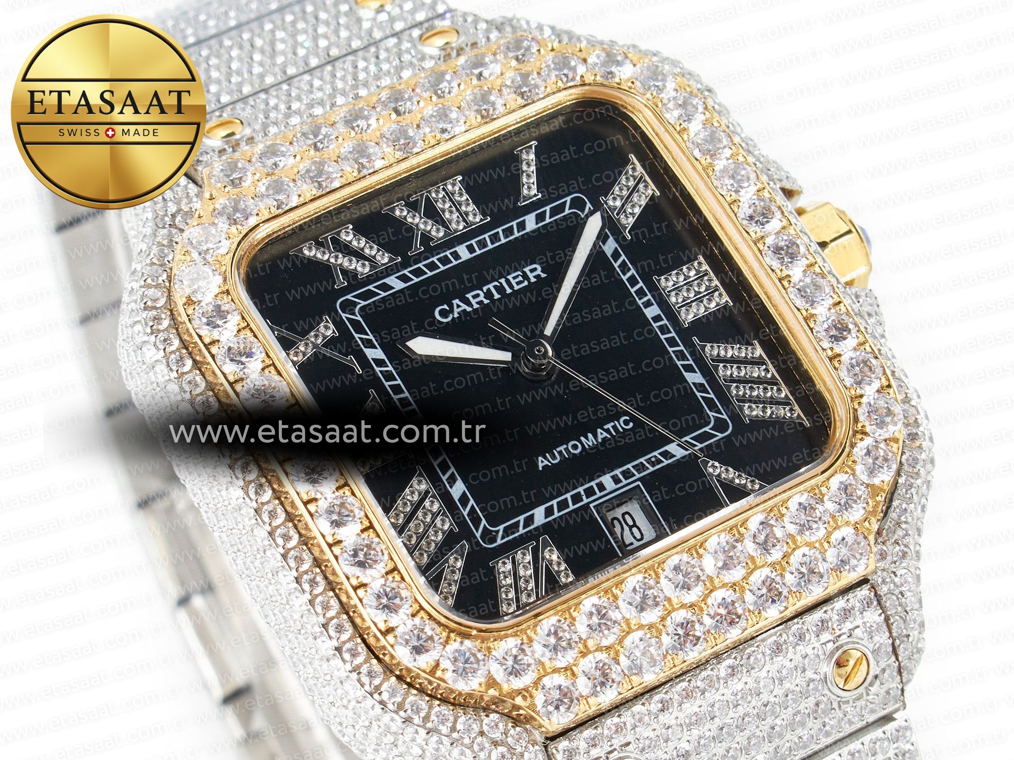 Santos De 40mm TWF 1:1 Best Edition Black Diamond Dial SS/YG Dia/Rmn A2824
