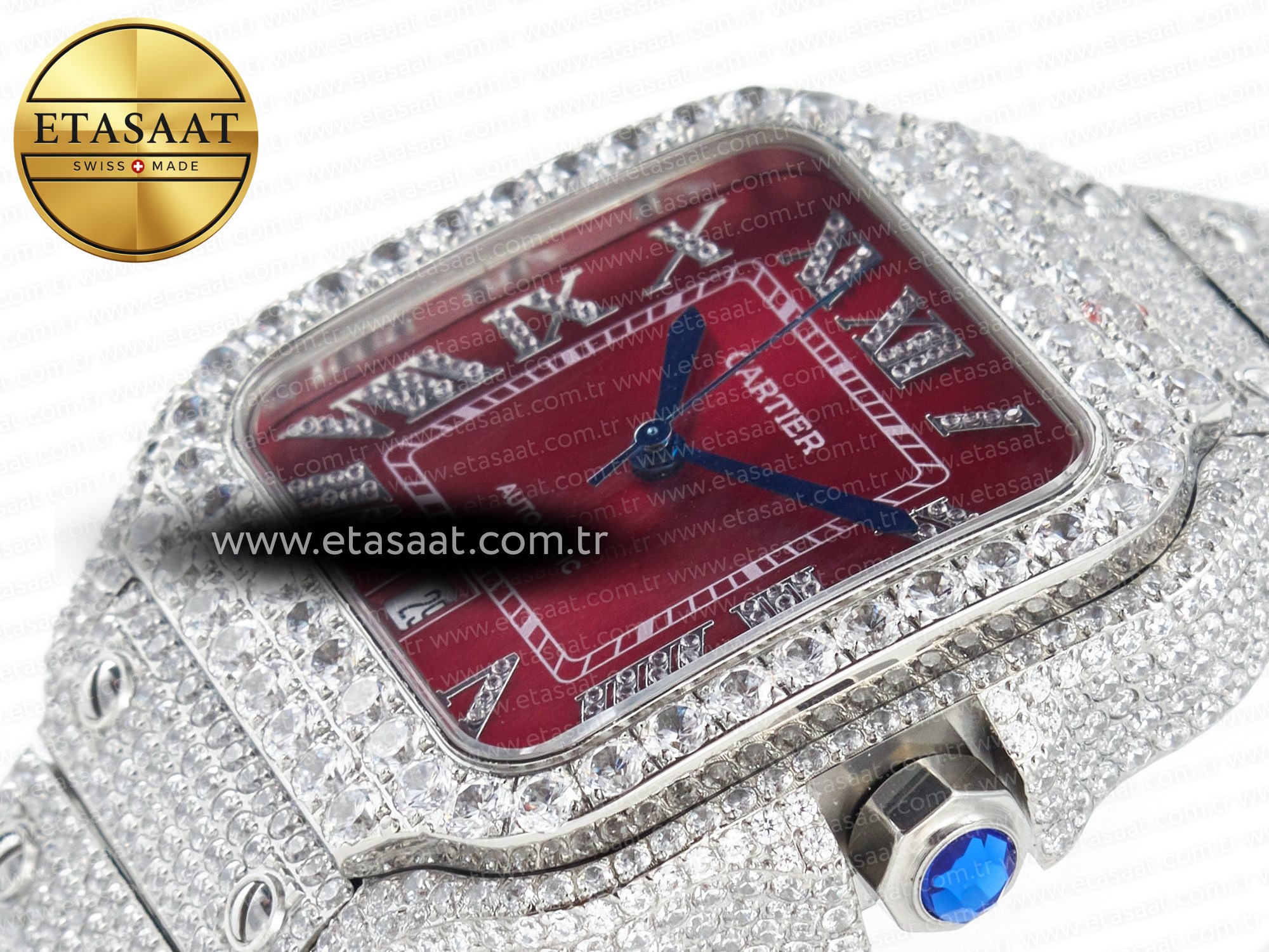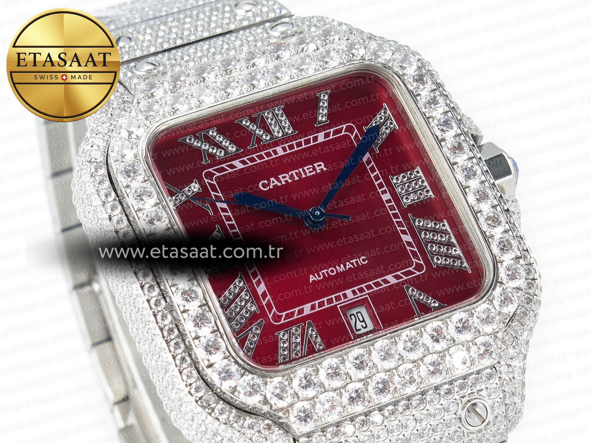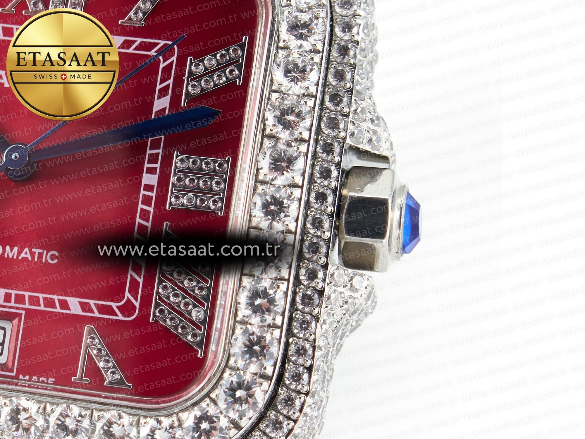 Dial: Custom diamond red  dial with roman dimond numbers