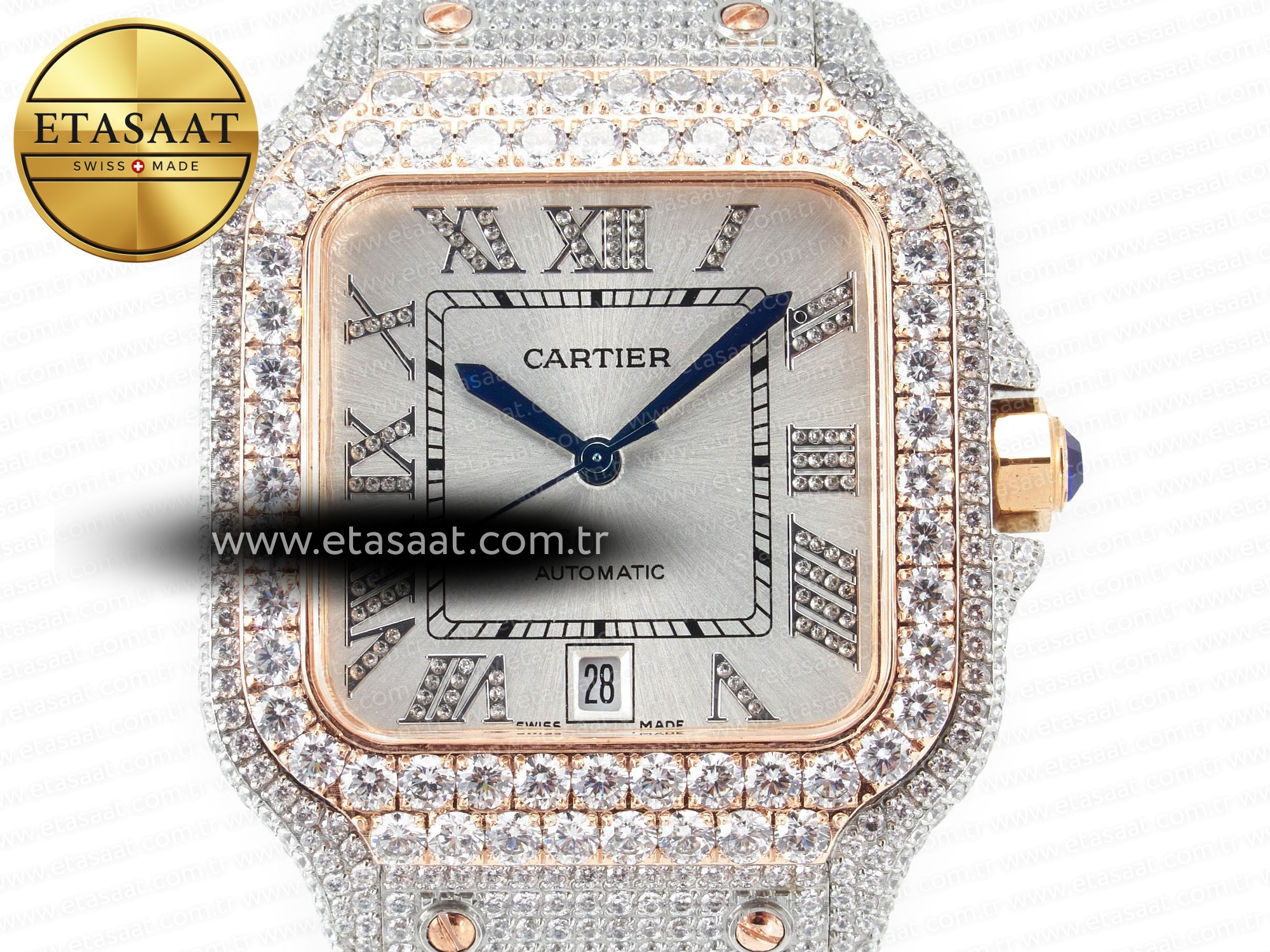 Santos De 40mm TWF 1:1 Best Edition White Diamond Dial SS/RG Dia/Rmn A2824