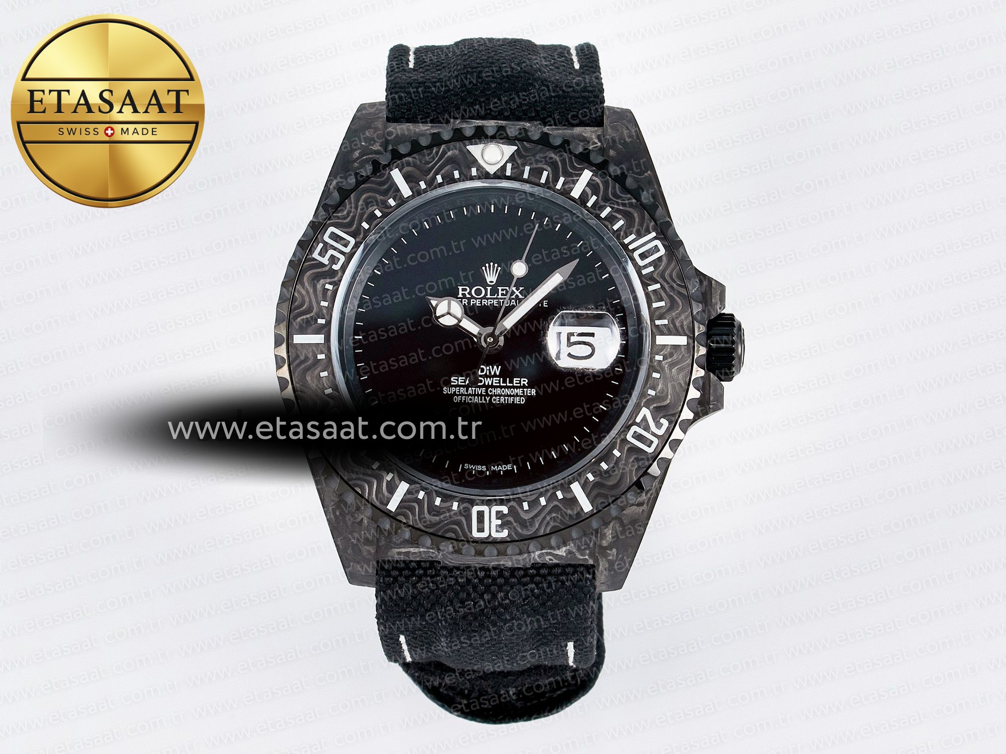Sea Dweller 43mm Carbon DIWF Best Edition Black Dial on Black Nylon Strap A2824