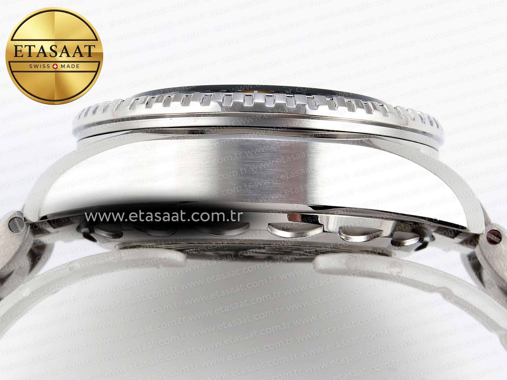 Bezel:: Uni-directional rotating black ceramic bezel