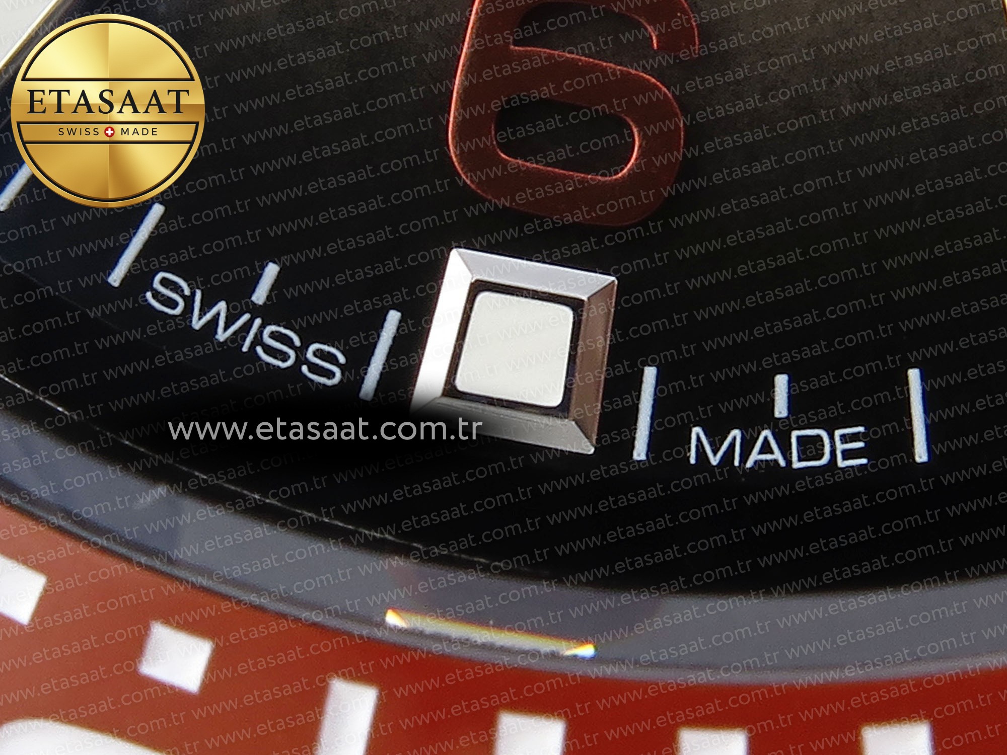 Bezel:: Uni-directional rotating orange ceramic bezel