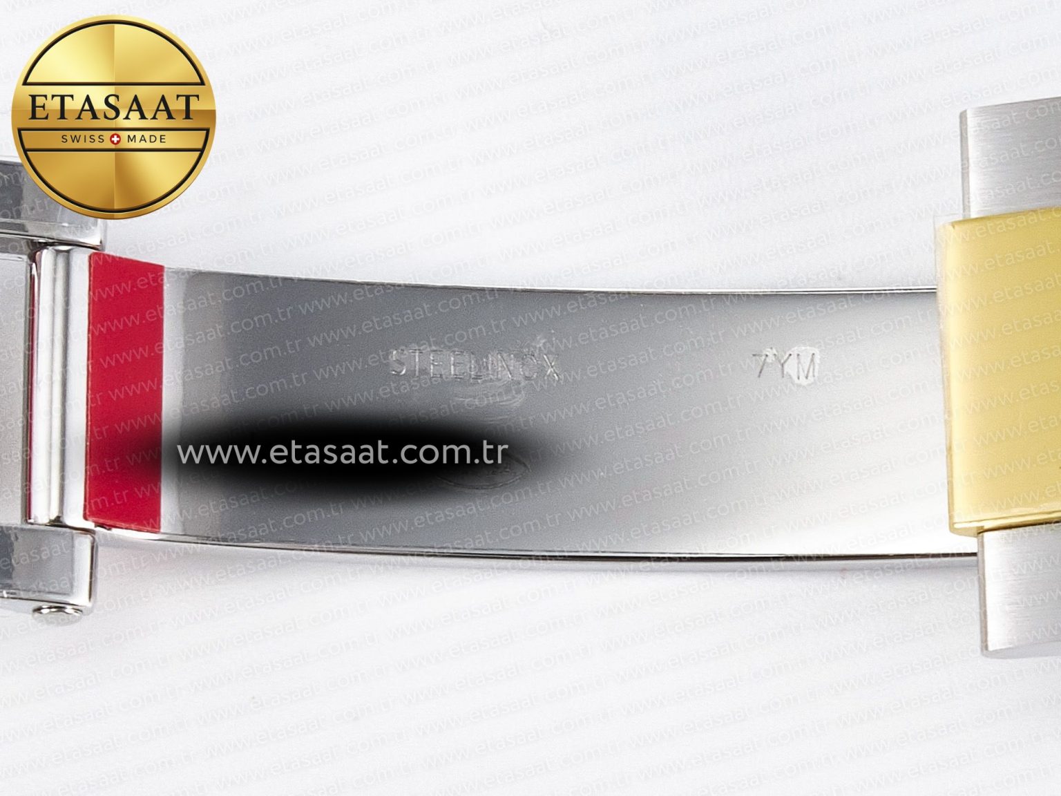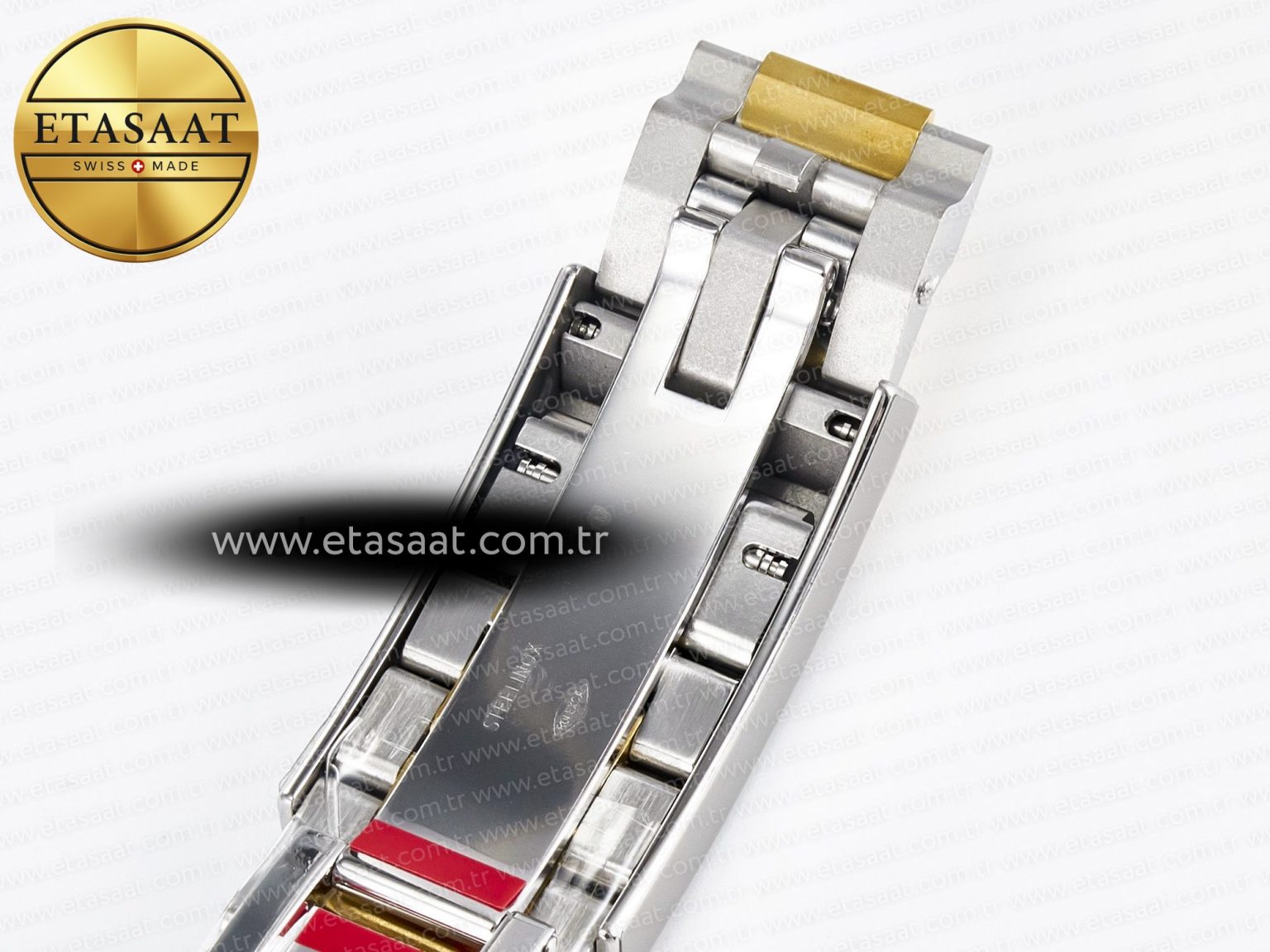 Strap: Solid 904L stainless steel bracelet, 18K yellow gold plated middle links, with perfect SEL, clasp and extension and smooth screws (The Best Rolex Bracelet EVER)