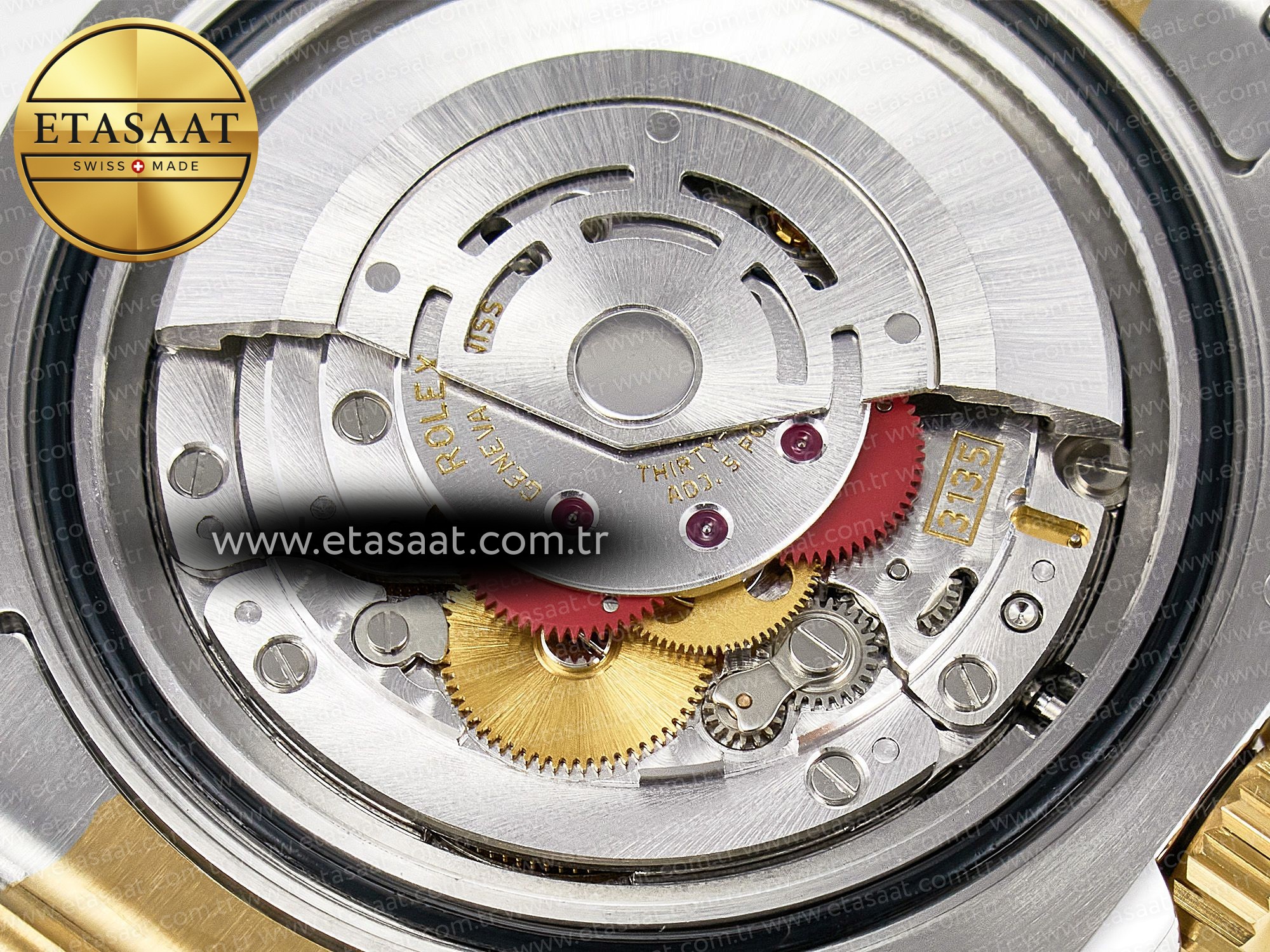 Strap: 904L stainless steel bracelet with perfect SEL, clasp and divers extension and smooth screws, 18k yellow gold plated middle links